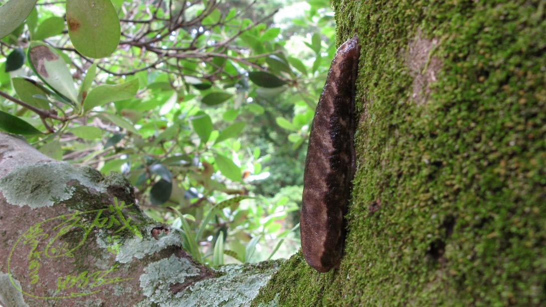 門をくぐるとかなり大きなモチノキが有る。この木にはヤマトヨウジョウゴケやノキシノブが生えており雰囲気がとても良い。