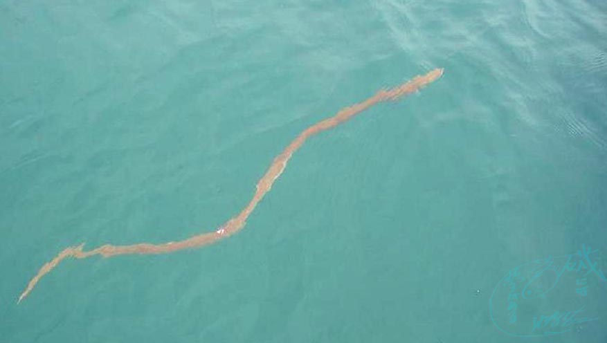 蒲江のキス釣りで釣れた事が有るけど、コイツは海面上を泳いでいた。口が鋭く尖っており、歯が鋭いので噛まれない様に注意・・・って気色悪くて触れない。2m級にもなるそうだ。