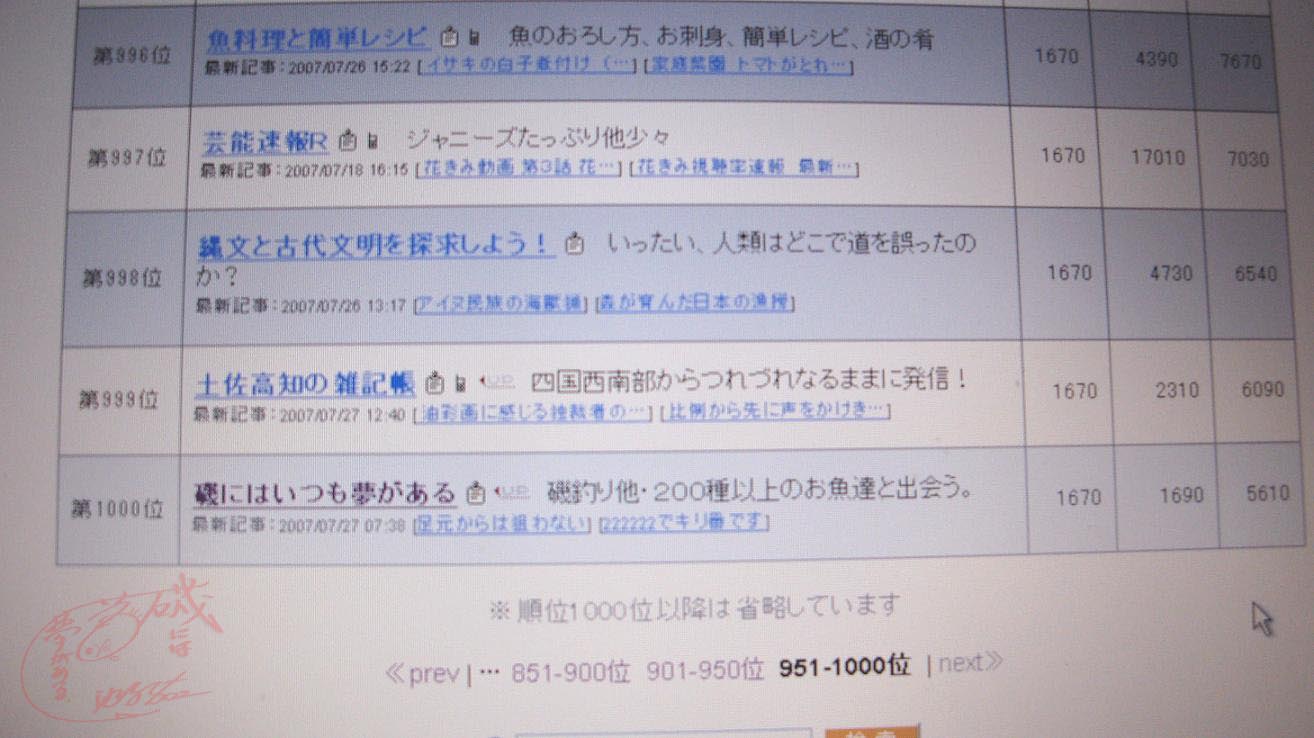 昨日は皆様のお力で、総合1000位以内に再び戻ることが出来ました。ありがとうございます。ここの登録件数は423000件も有るんですよ。