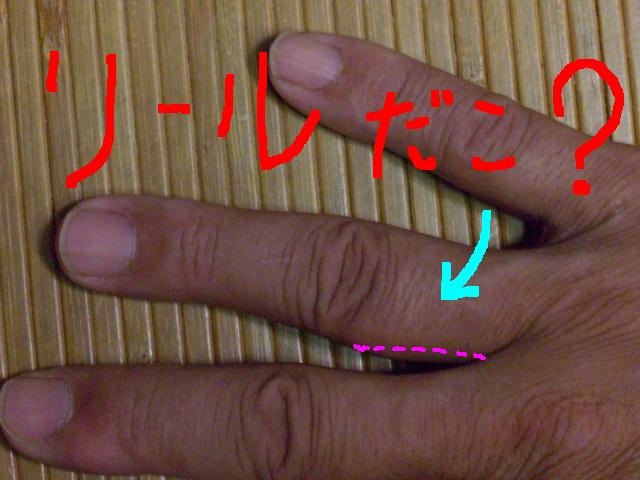 竿を持つ時、リールの足を中指と薬指で挟んで釣っている訳よ、どーもそれが原因で薬指がいびつな形になってもーた。