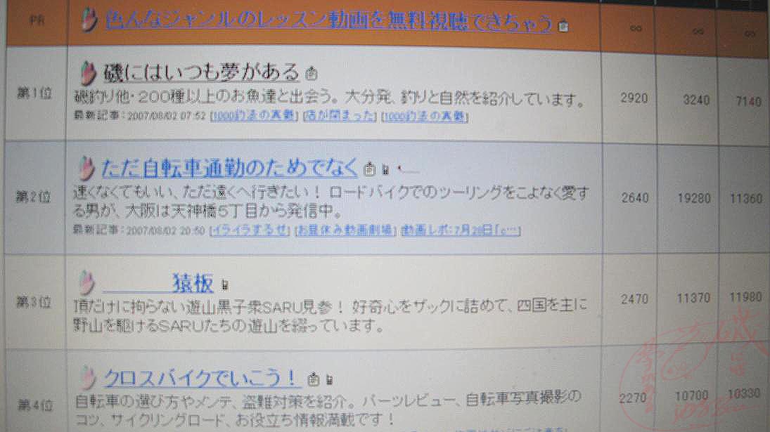 この表示でも解るとおり、一日平均約40名の方々(2920÷7÷10)にランキングバナーを押していただいた結果ガ出ています。それと、昨日の来訪者は過去最高で1062名にも達しており、とうとう1000人台の大台に突入です。