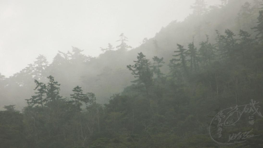 今回は、その上り坂方面に車を走らせて、鶴見岳に行けるロープーウェイの駐車場で絵を撮りました。霧がかかって水墨画の世界に迷い込んだみたいで、かなり幻想的でした。