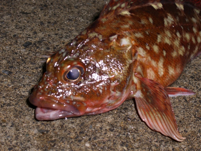 カサゴ(アラカブ・ホゴ・ガシラ)は、昼釣りの場合基本は底狙い。よって、一文字は水深10m強を狙うけど、夜の釣りは浅く狙った方が効果が出る。