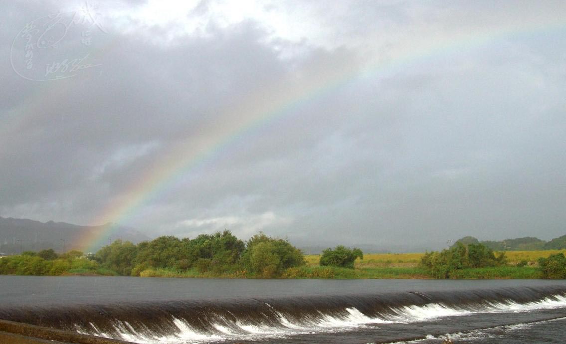 虹の出現は太陽を背にして前に出来ます。今回は10分くらい雨が落ちました。