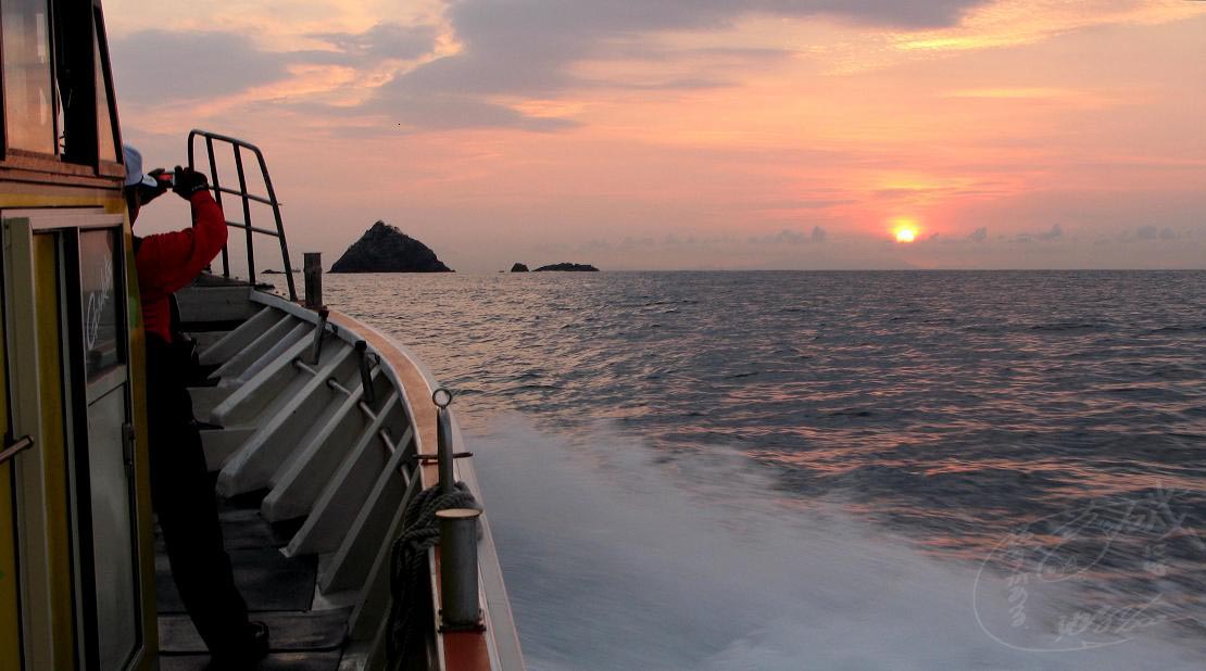 キナルバエ・横島1番・4番などが、朝日の中に浮かび上がっています。