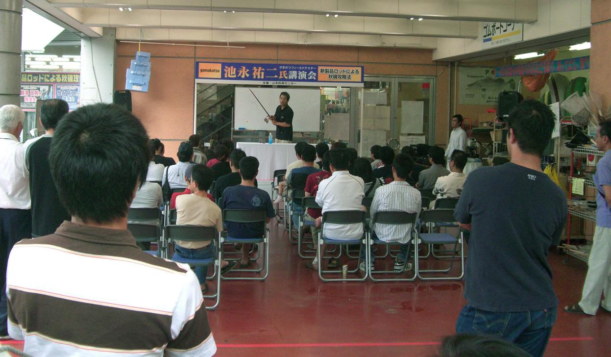 聞いてくれた人達は、最初の頃は30人くらいだったけど、次第に増えてきて、50人くらいになったのではないでしょうか?山本釣具センターさんには大変お世話になりました(^^♪