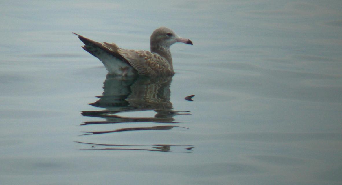 ウミネコの若鳥で、まだ親鳥の色にはなっていません。普通の人はカモメと呼んでいるけど、大きくまとめるとカモメ科の鳥だから間違いはない訳で・・・
