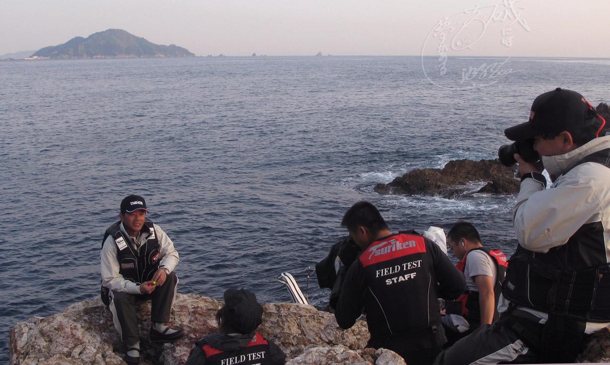 大分の秋磯は、四浦半島周辺から始まるのが通例なので、蒲戸崎を舞台に撮影がスタートしました。山本さんプロデュースの新しいウキを、順調に説明していたものの、本来なら釣れ始めても良いグレが全く釣れないのです。その原因はアジゴ!本当にたくさんのアジゴがいます。磯際でも超遠投でもアジゴばかりです。