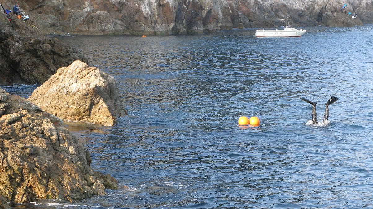絵は蒲戸崎での一コマです。『漁師さん、遠慮せずに潜って下さい。そちらは生活、こちらは趣味の釣りですから・・・』(^^♪