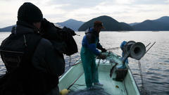 朝5時にOCTを出発~蒲江の河内湾で縦網漁の取材を行ってきました。