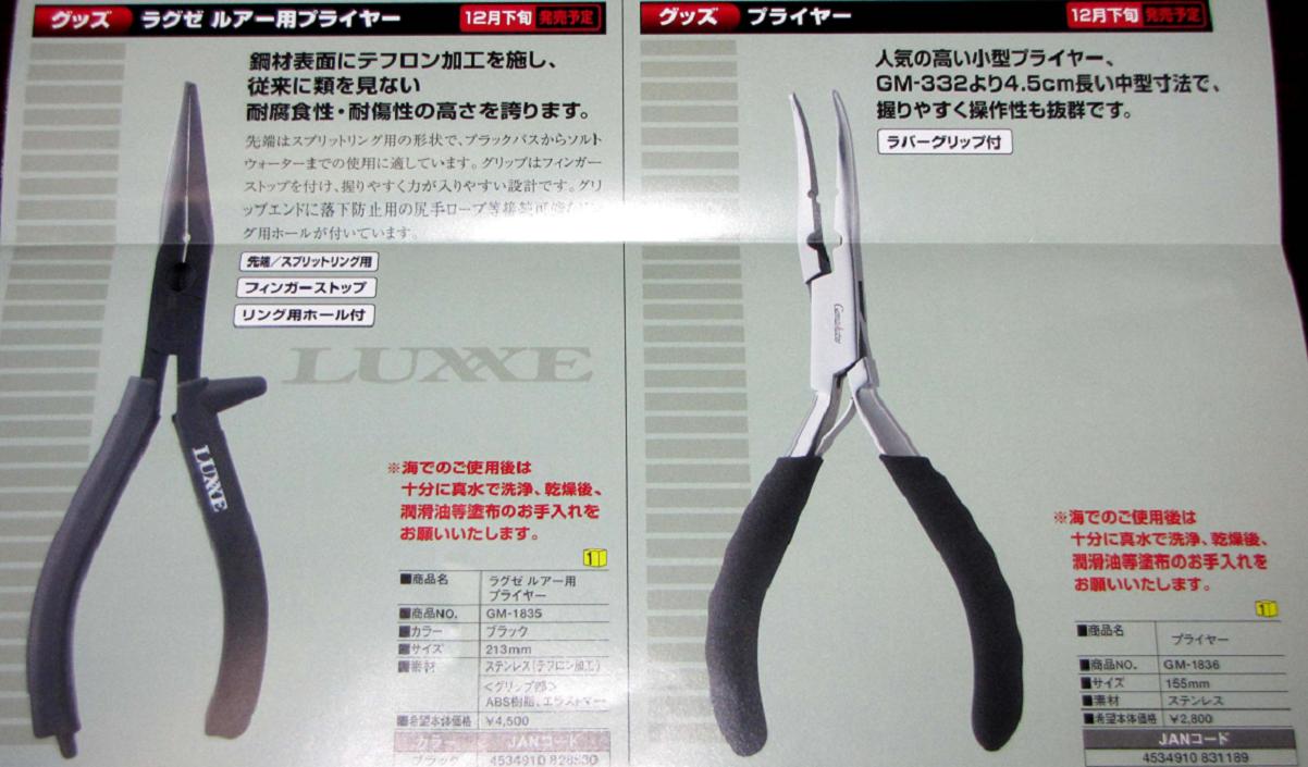 ルアー用のプライヤーはジギングやカンダイ釣りに必要です。フィンガーストッパーがあるので力を入れやすい。