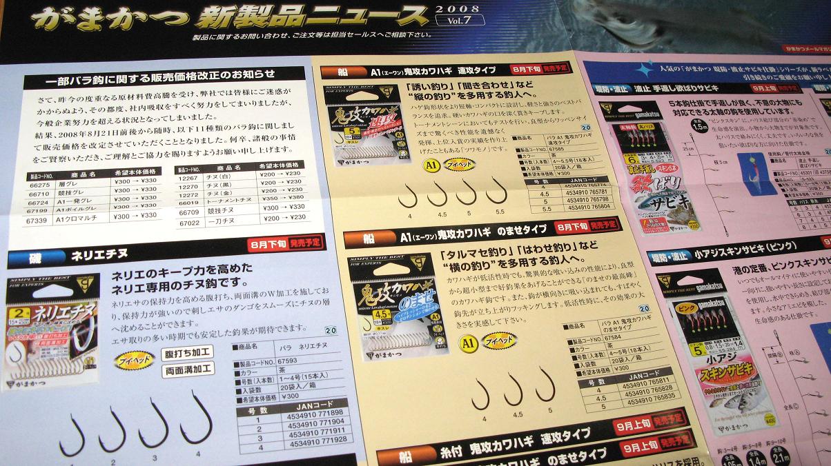 ネリエチヌ・・・いつ出るかいつ出るかと思っていました。今やチヌ釣りではネリエは必ず使うもの。グレ釣りでも使う地域が有るし、大分ではパン粉釣法も盛んなので、これから重宝する鈎になるでしょうね。