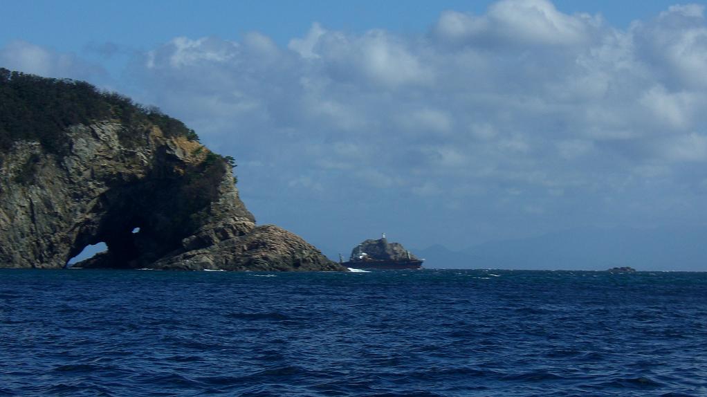 絵は鶴見のダンバナ。タンカーの向こう側に見えるのが、先の瀬の中のハエで、その右側にイガバエも見えるし遠景は四国。先の瀬一帯は大分県漁業調整規則により《全てのマキエ釣り禁止》区域。