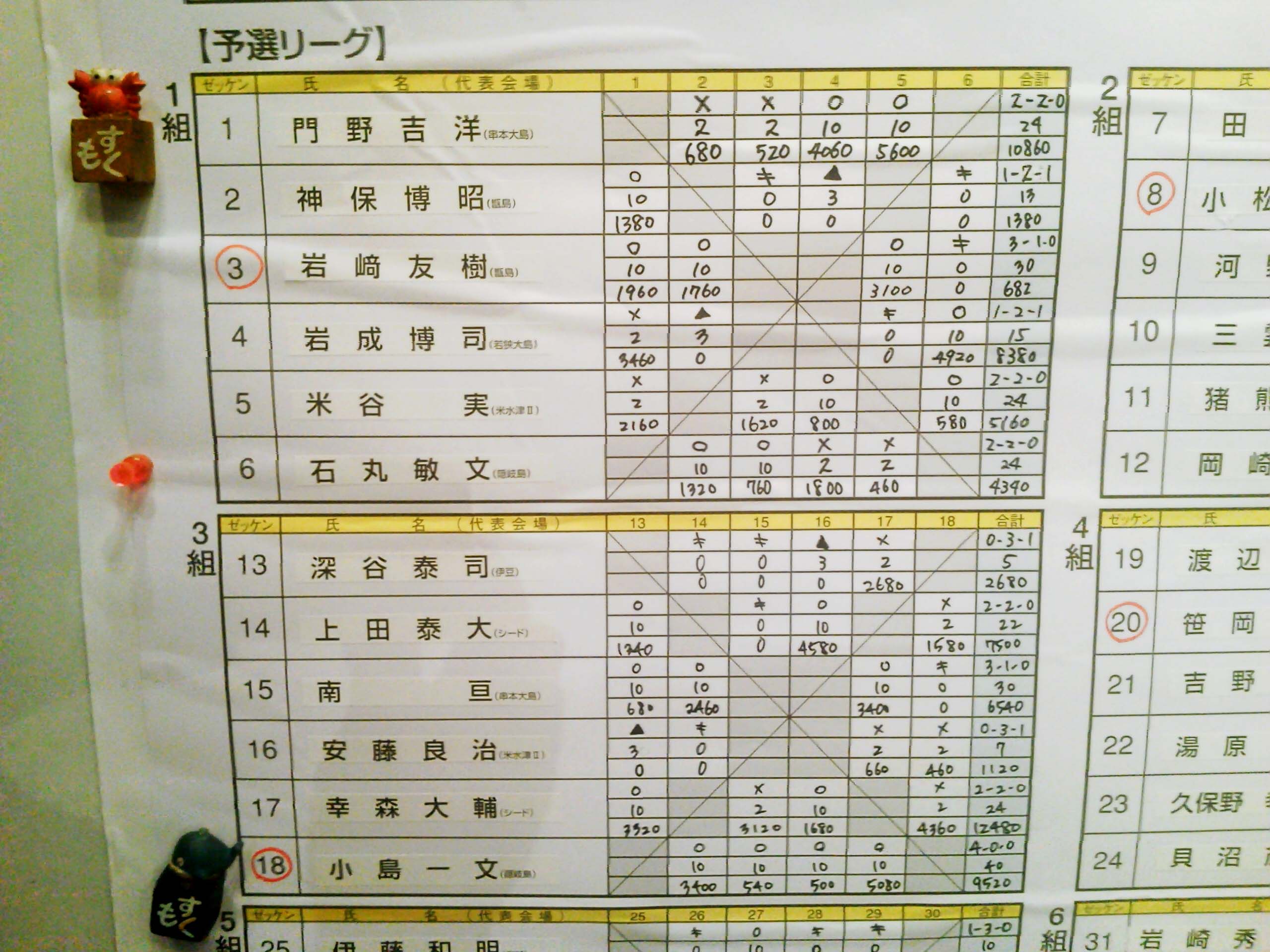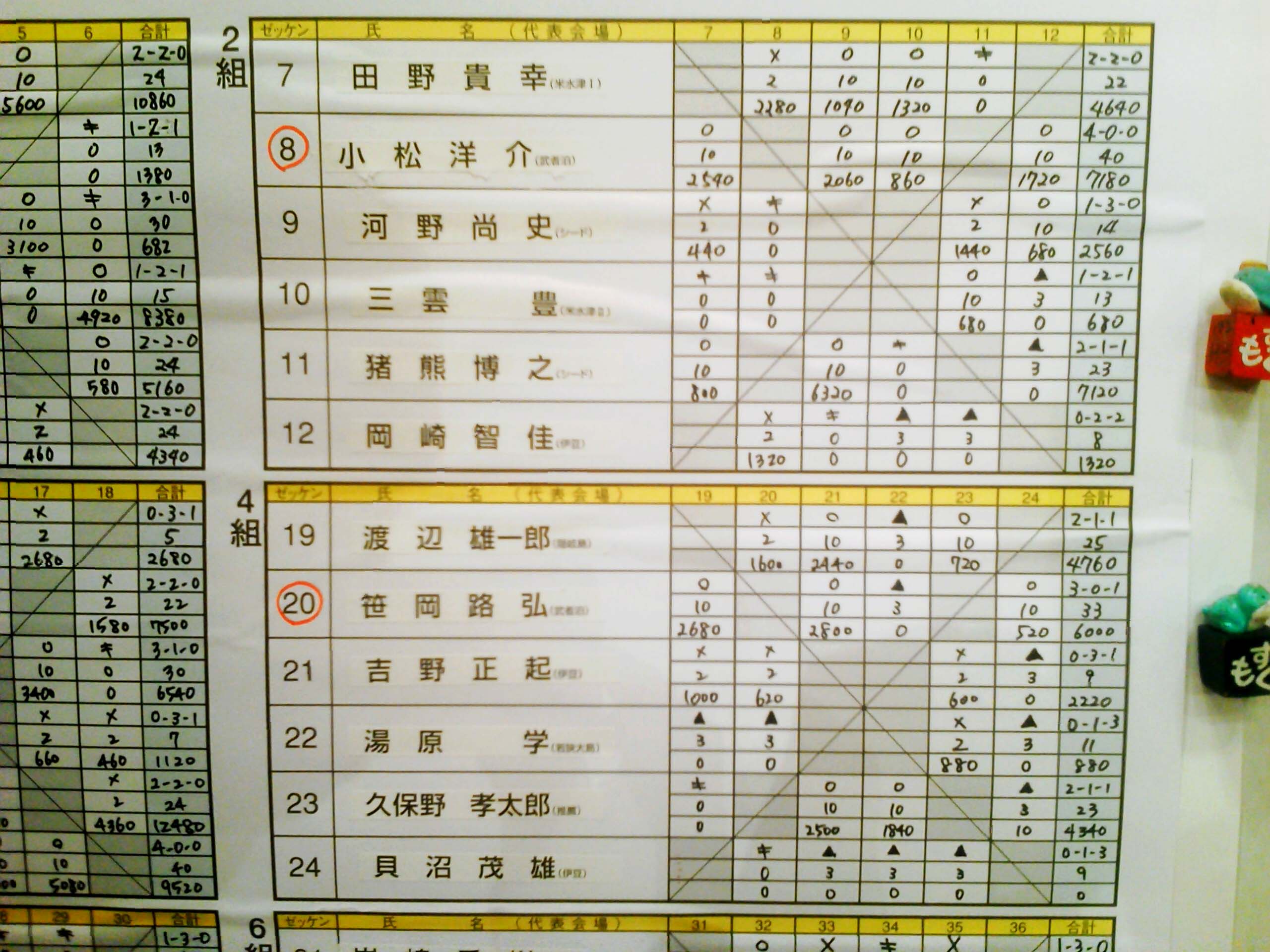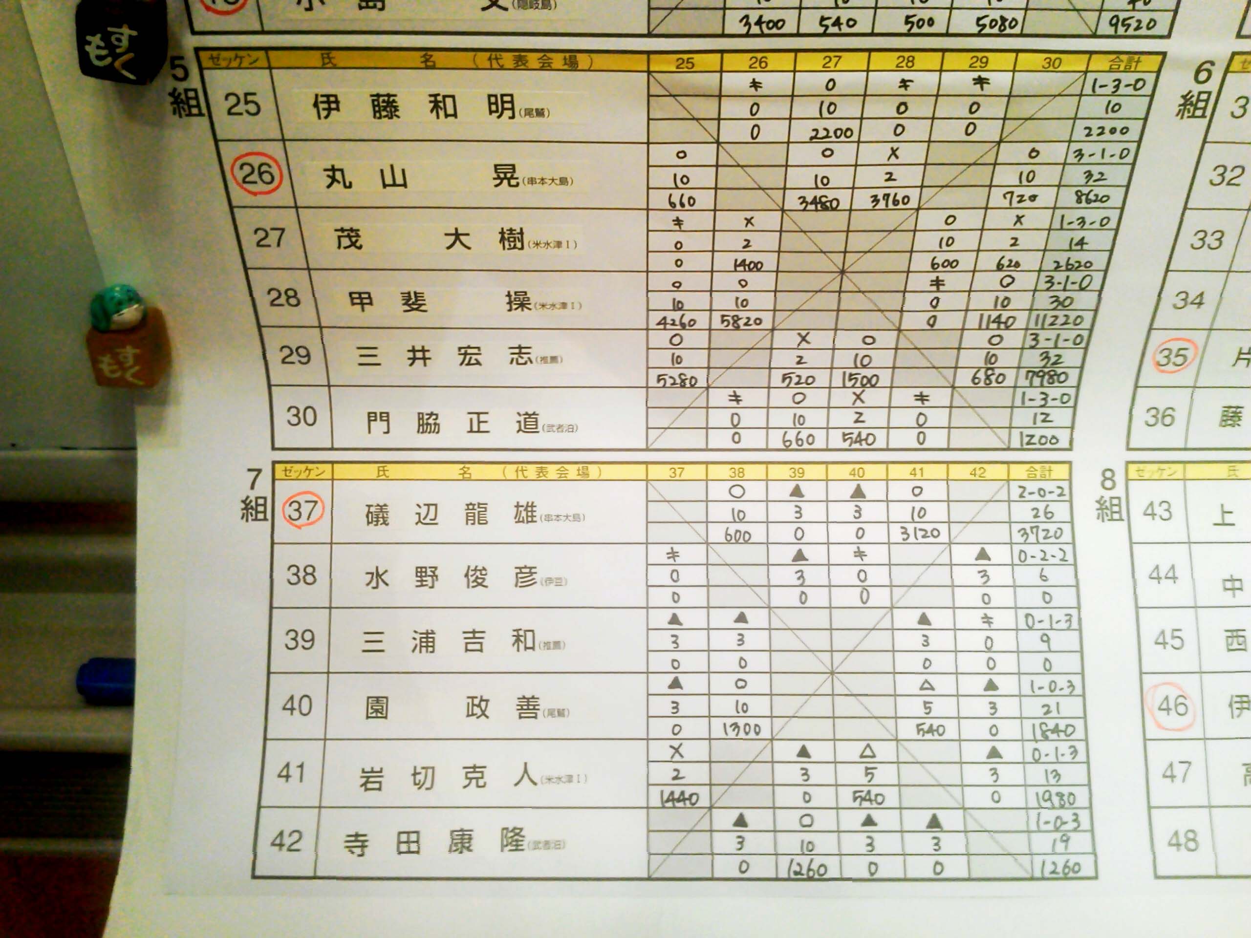 対戦表の記号と点数 (総得点の多い人が勝ち上がります)