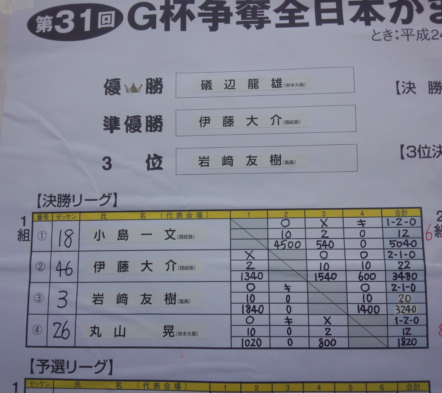 予選リーグ試合結果はこちら G杯グレ歴代優勝者はこちら