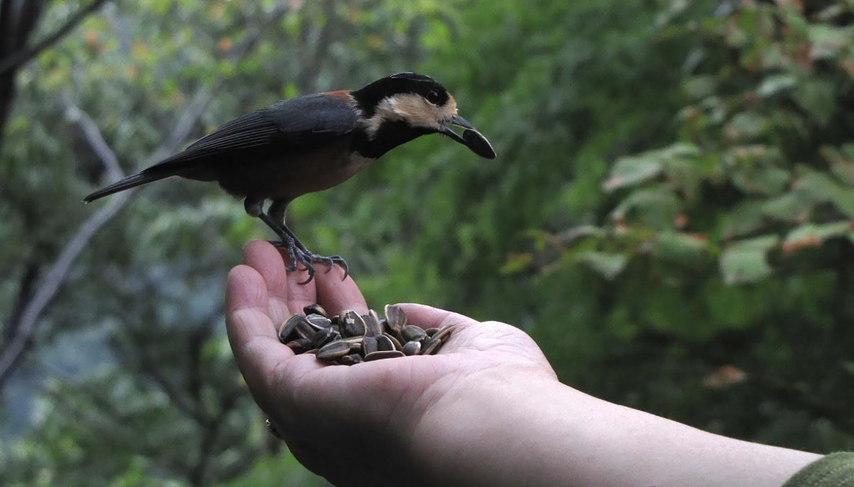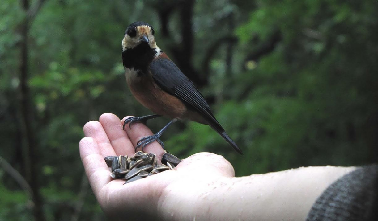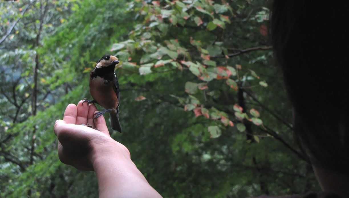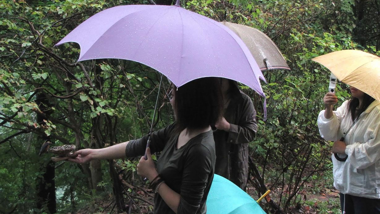 当日は激しい雨が降りましたが、そんな時には車の中から手だけを出したので、ヤマガラも沢山来てくれました。・・・2時間の触れ合いは成功です。
