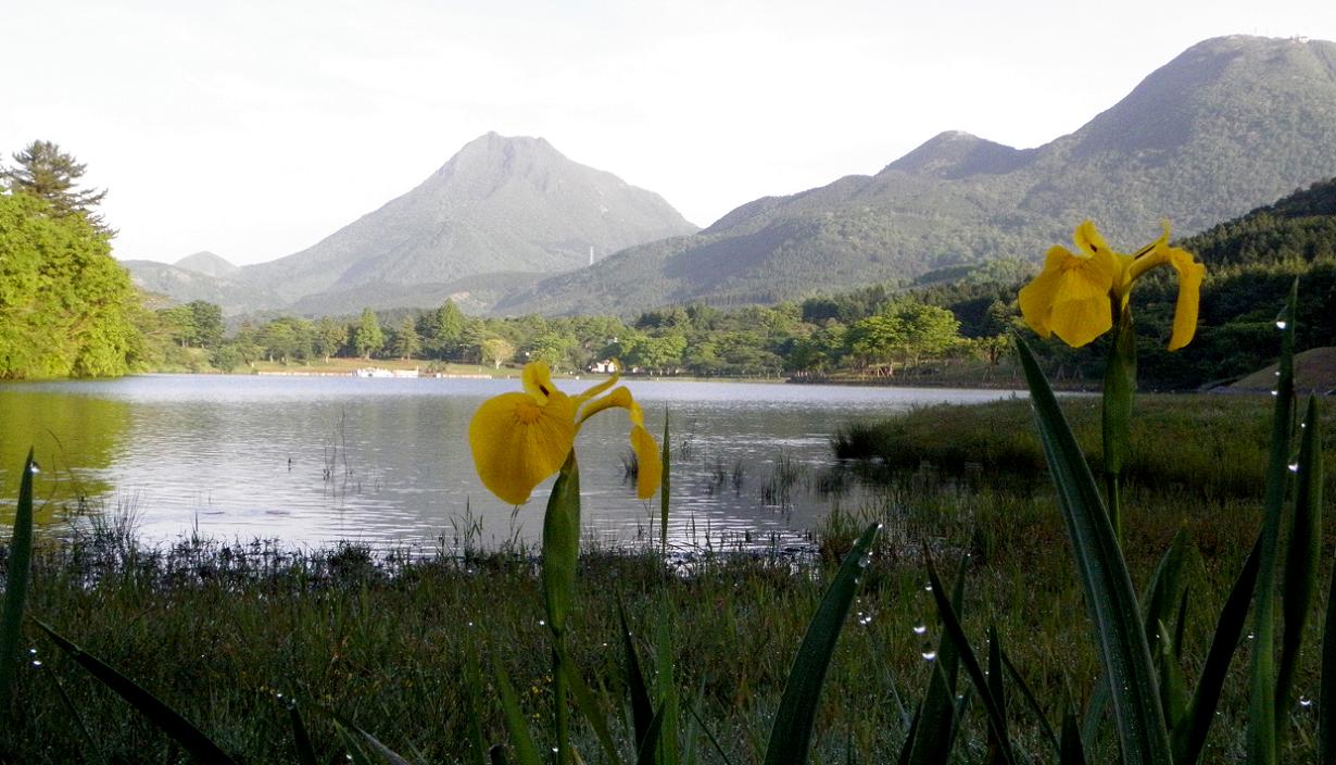 正面には由布岳がそびえています。