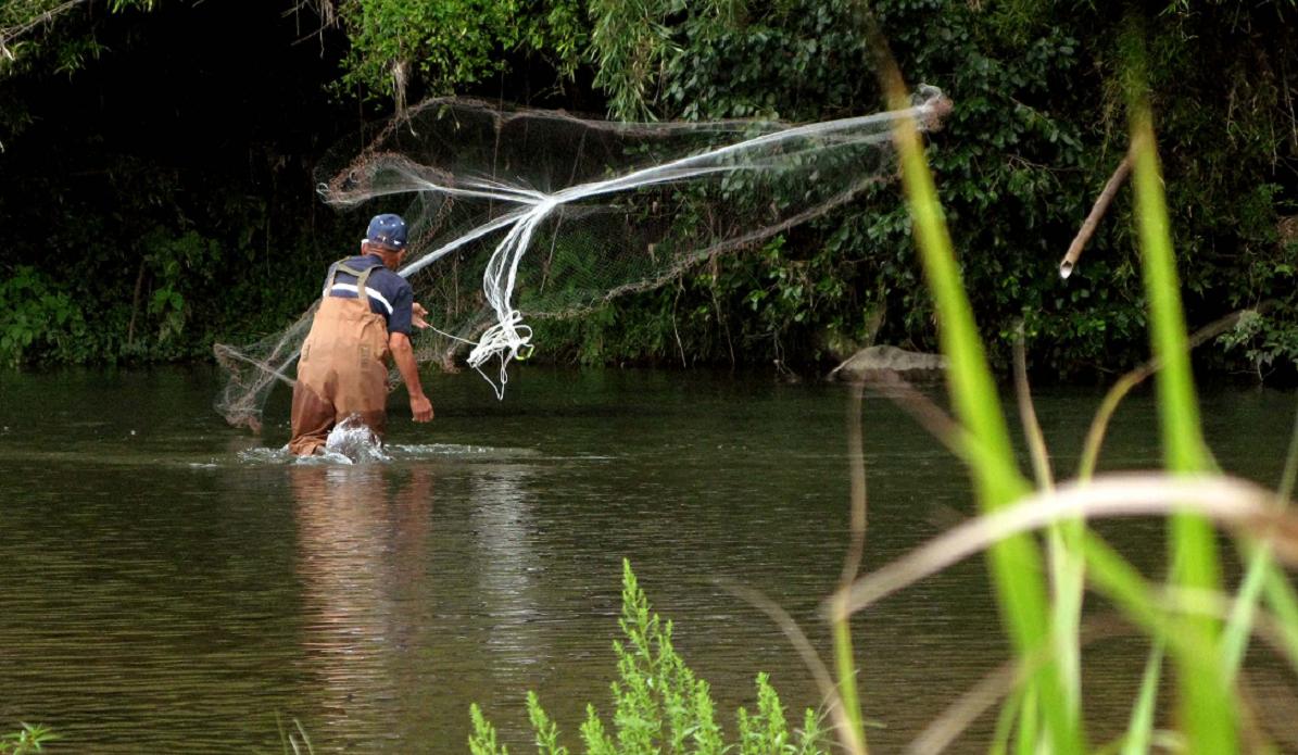 投網です。打っているのは、七瀬川でカニ漁をしているおじさんです。年を召しているので闇雲には打ちません。