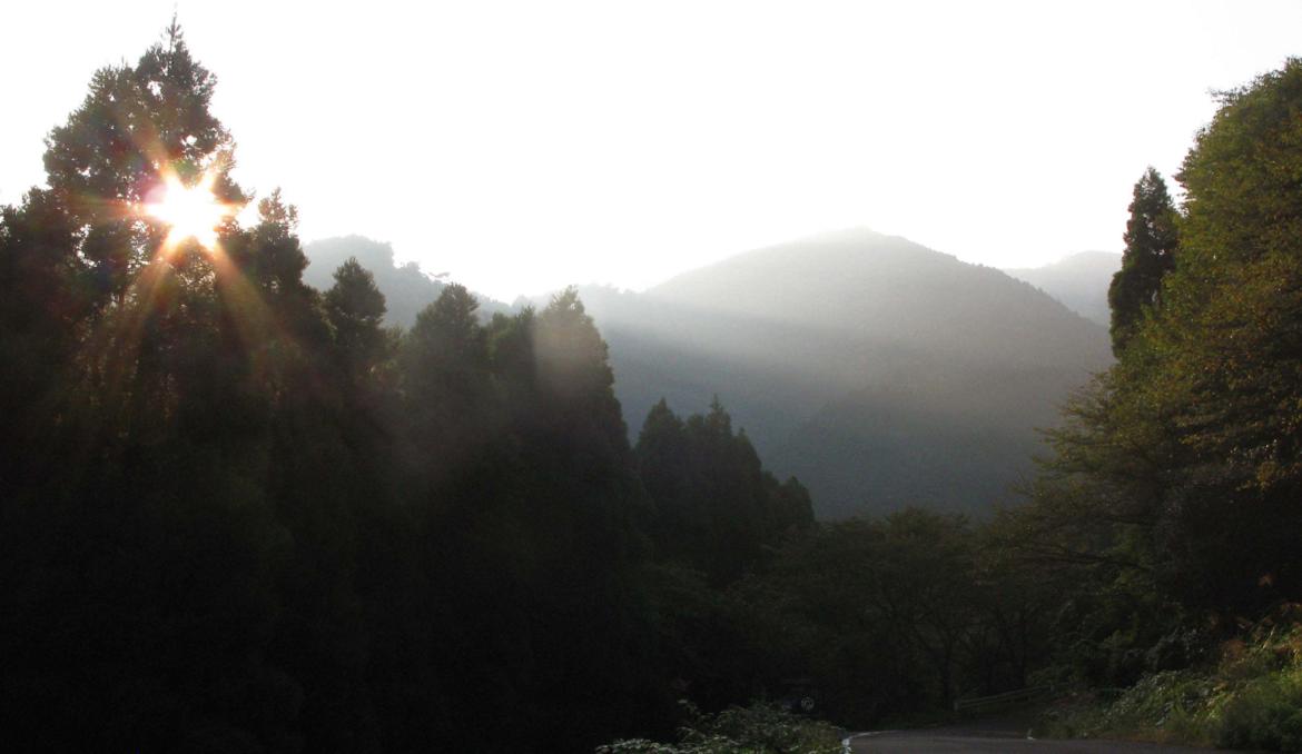 8時前、山の向こうから朝日が顔を出しました。まだ影になっている手前の山の前に、朝の光が軟らかく差し込んで秋の一日が始まります。