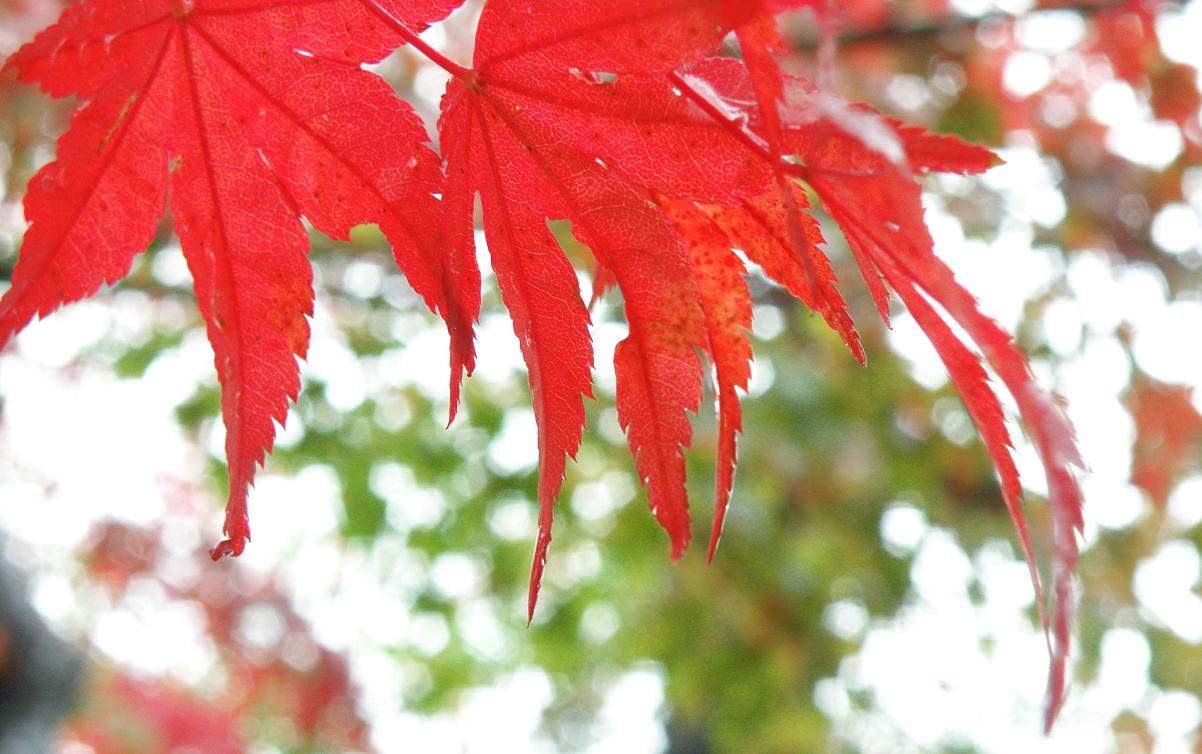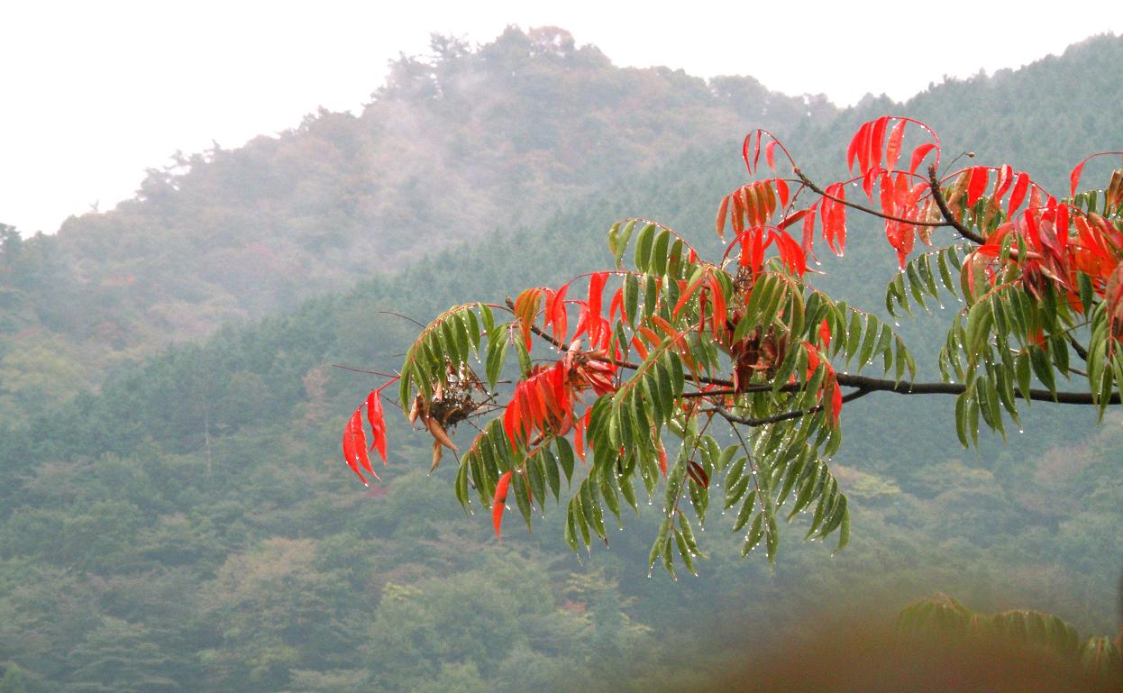 ハゼの木の赤と緑の葉っぱが綺麗です