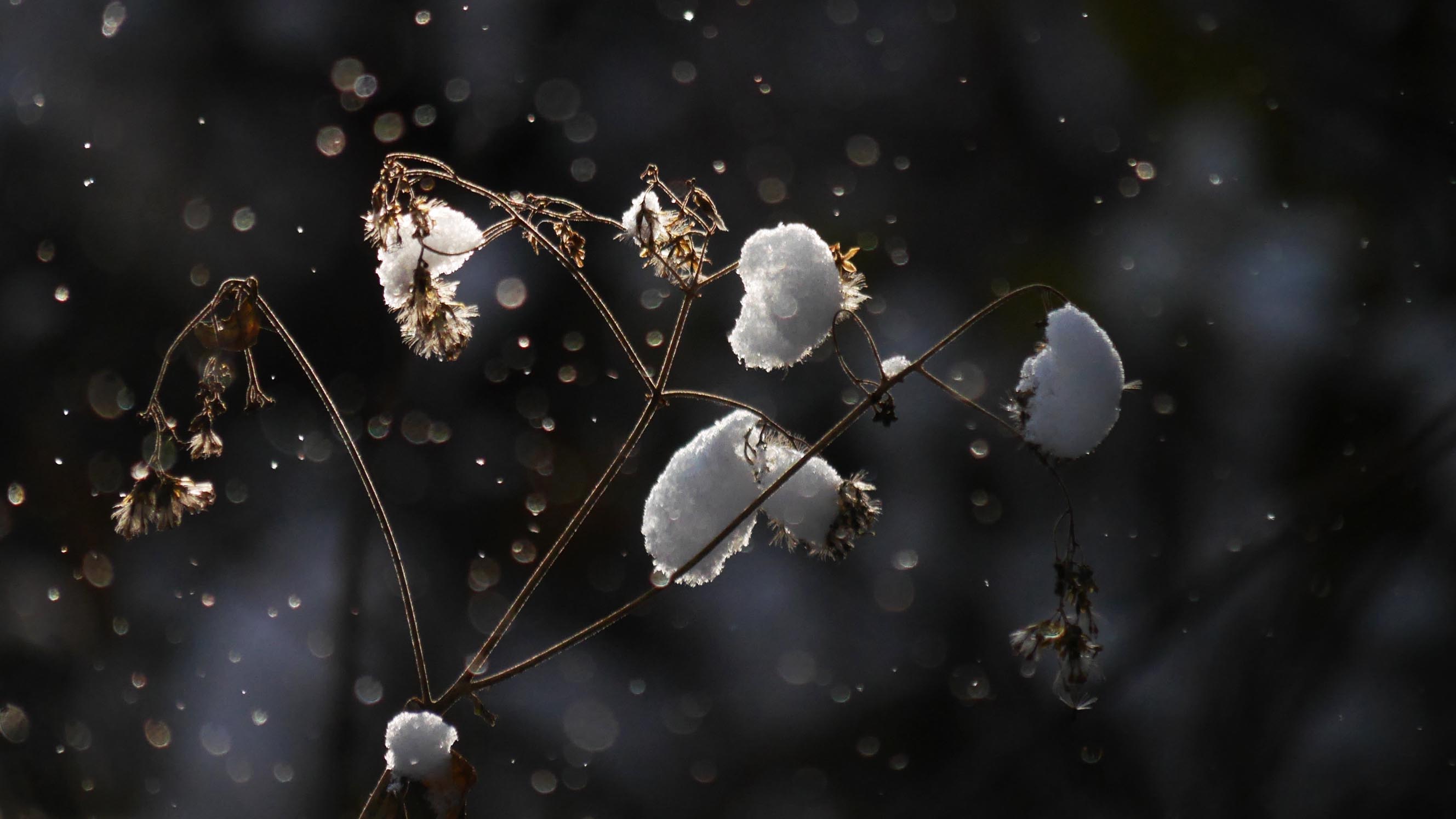 雪も時々降り続いていますが、風が吹くと木々に積もった雪が落ちます。