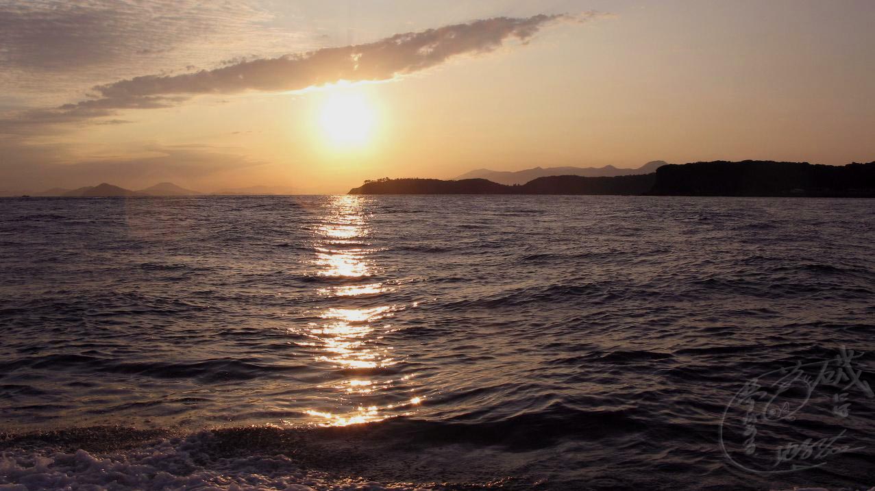 玄界灘を北東に向けて航行中、朝日が上がってきました。