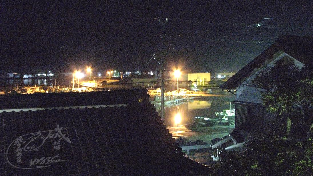 ここの二階の部屋からの眺めには、静かな漁港が見える。昼間はなんの変哲もないけど、夜になるとまた違った雰囲気をかもし出す。