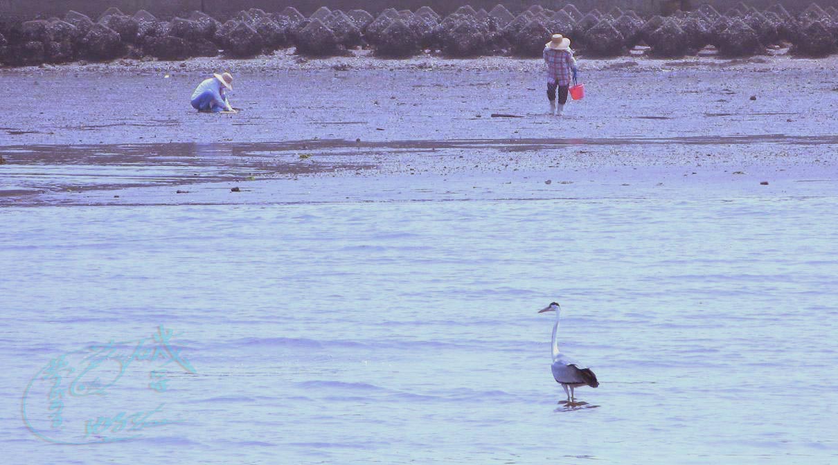 人もアオサギも一緒になって漁をしている(^^♪