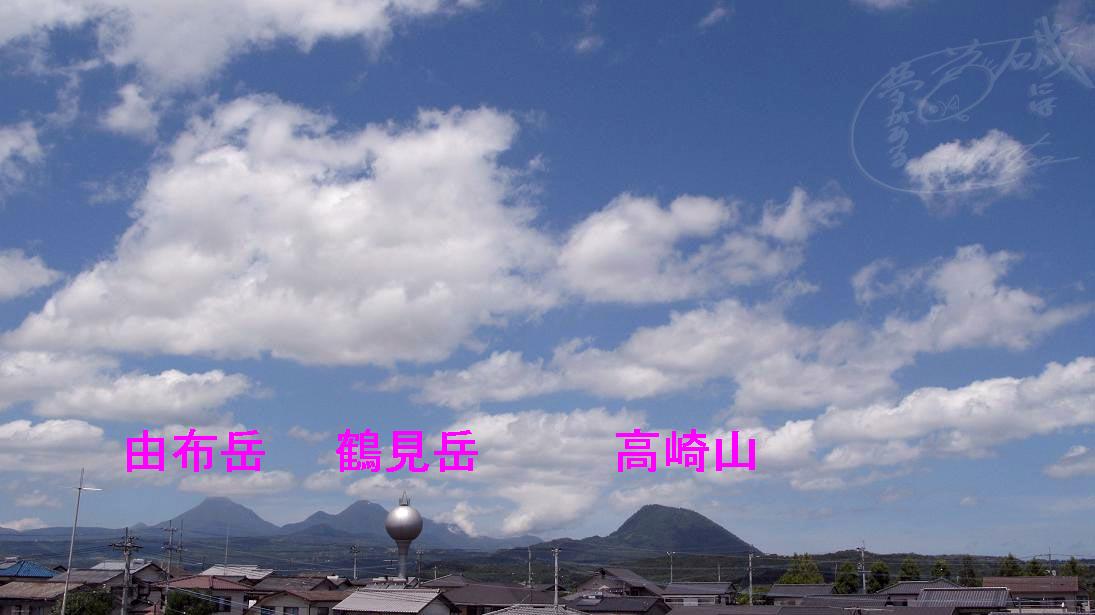この絵は大分ケーブルテレコムの屋上からの絵で、大分市から西側を望むと、左から由布岳・鶴見岳・高崎山が連なって見える。いつも眺めている風景だけど、毎日違う顔をして私たちを見守っていてくれる。