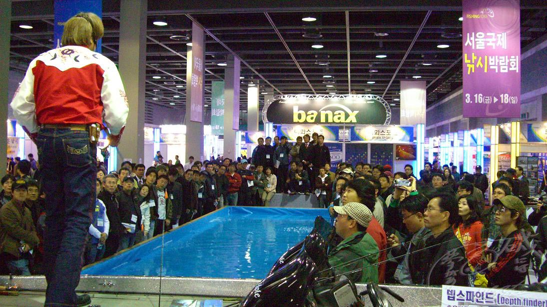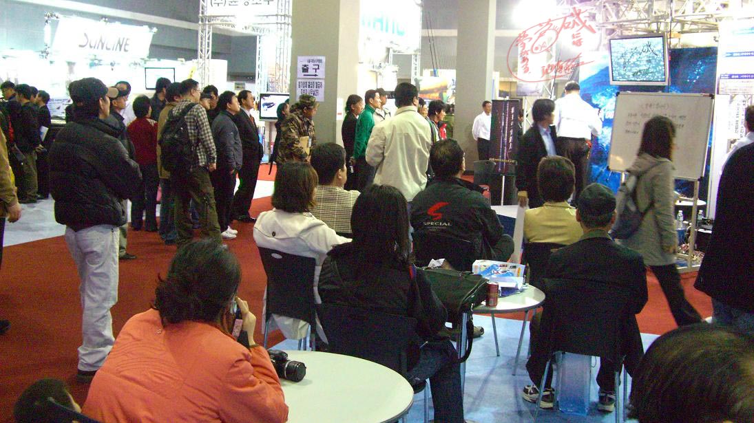 通常、ブースで放映されている釣りのビデオは、立ち止まってまで見ることは稀だけど、凄い事になった訳。