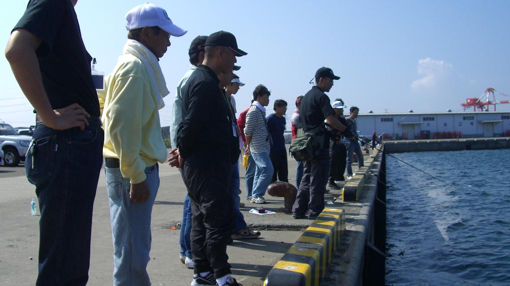 一文字から戻り、岸壁で竿を振っての講演も・・・。