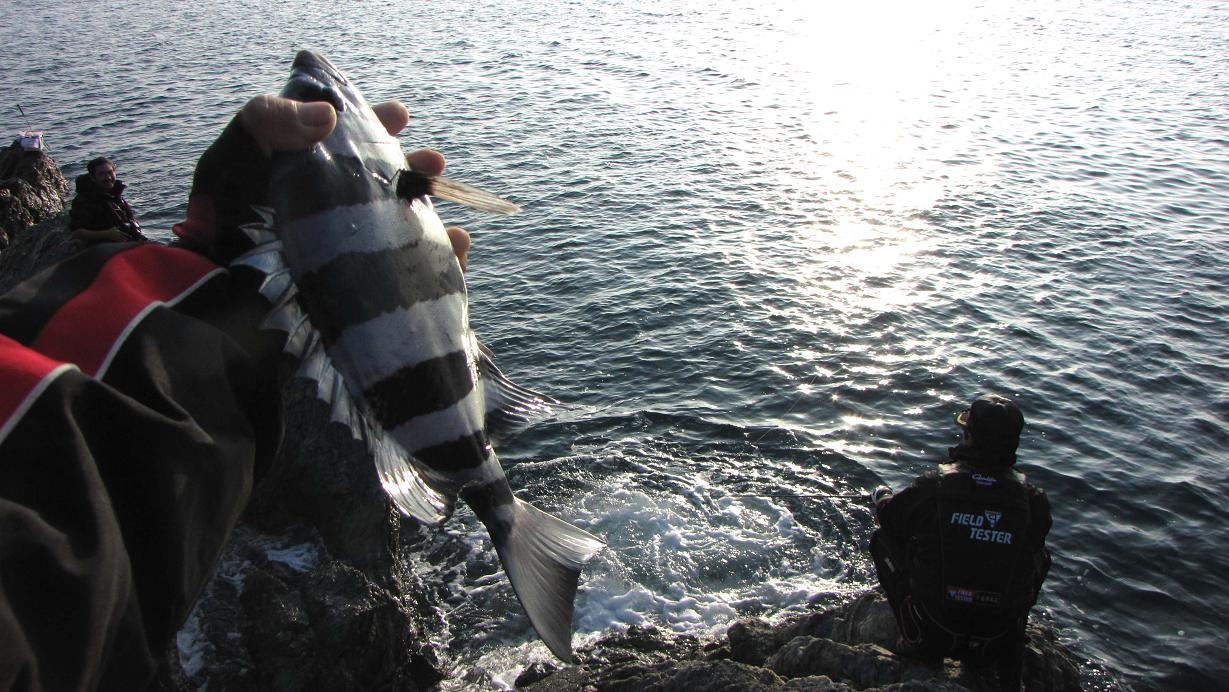 今の時期は地磯とは思えないほどの良型が出るので、沖が混雑している時にはお奨めの場所。アオリイカも良く釣れる場所です。他魚も釣れましたが、ちゃんとグレも出ましたよ。