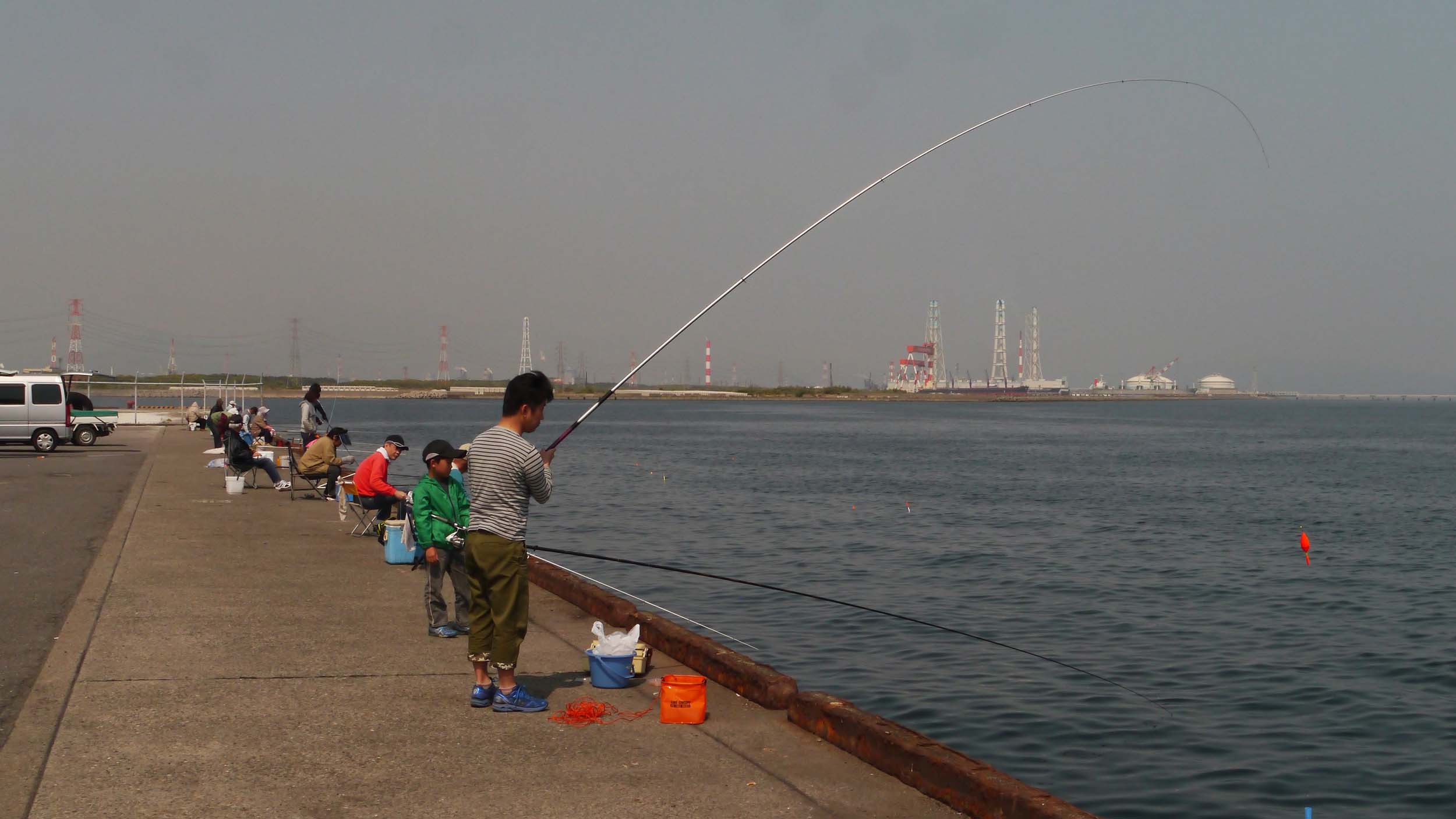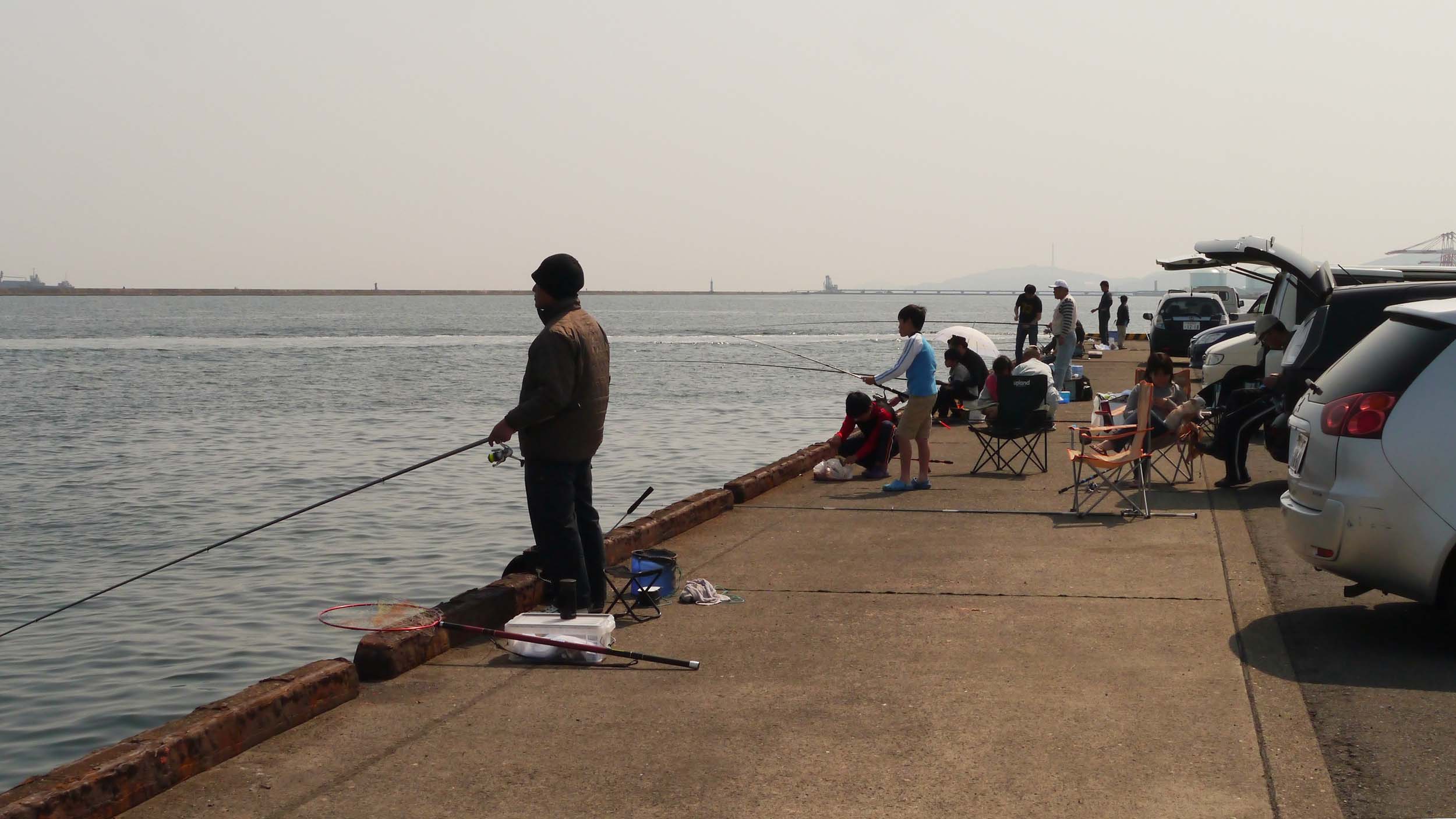 日曜日の大在公共埠頭は家族連れが多い