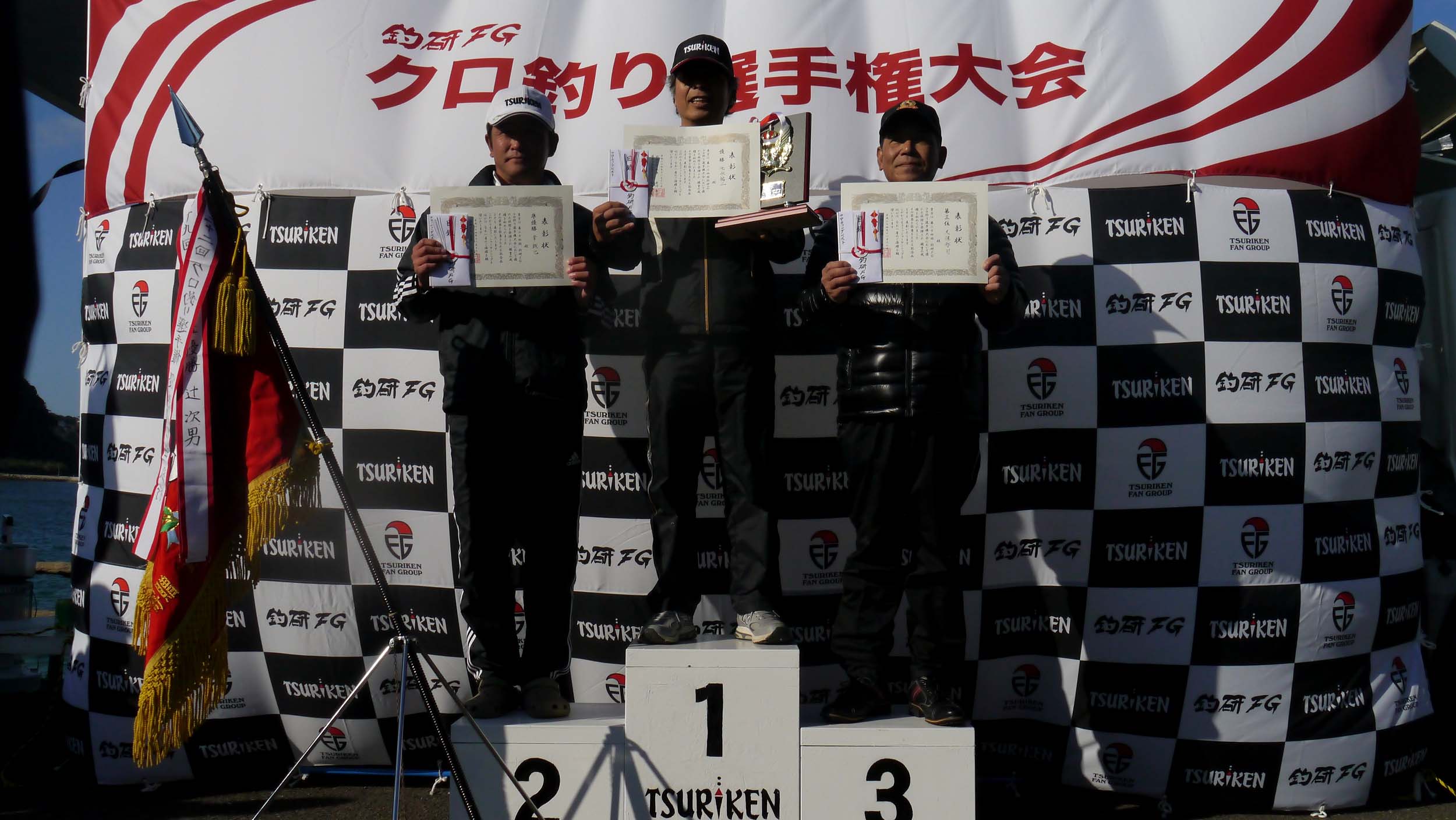 アジは型が良いものの、数は出ません。チヌはそこそこに釣れたので、撮影も成功です。検量はチヌ1匹の重量で審査し、上位3名を決定。特別賞には70歳を超えて、この講座に参加してくれた梅田さんに決定しました。