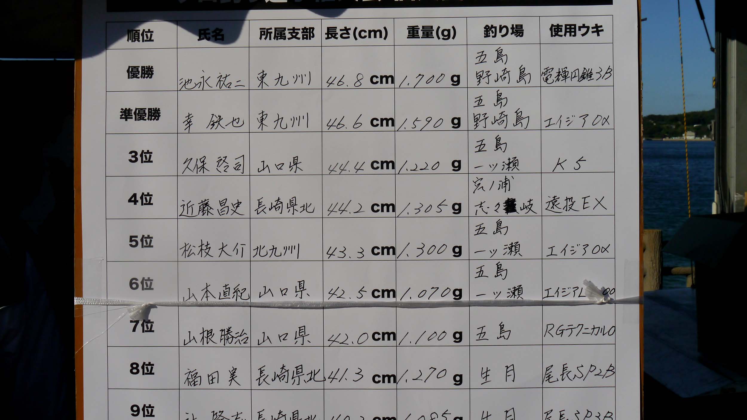 大会スタッフ・選手・渡船・社員の皆様お疲れ様、ありがとうございました。
