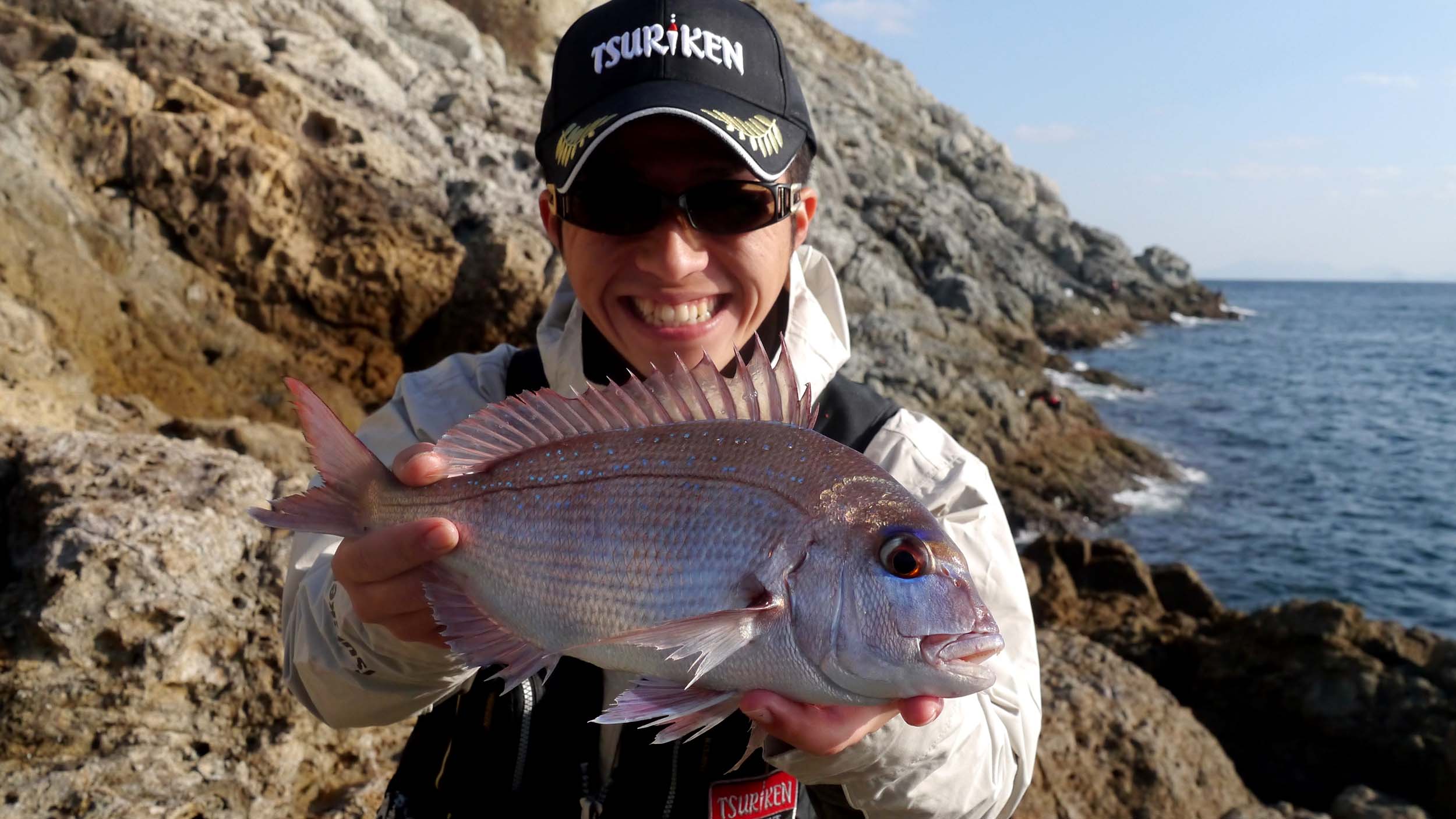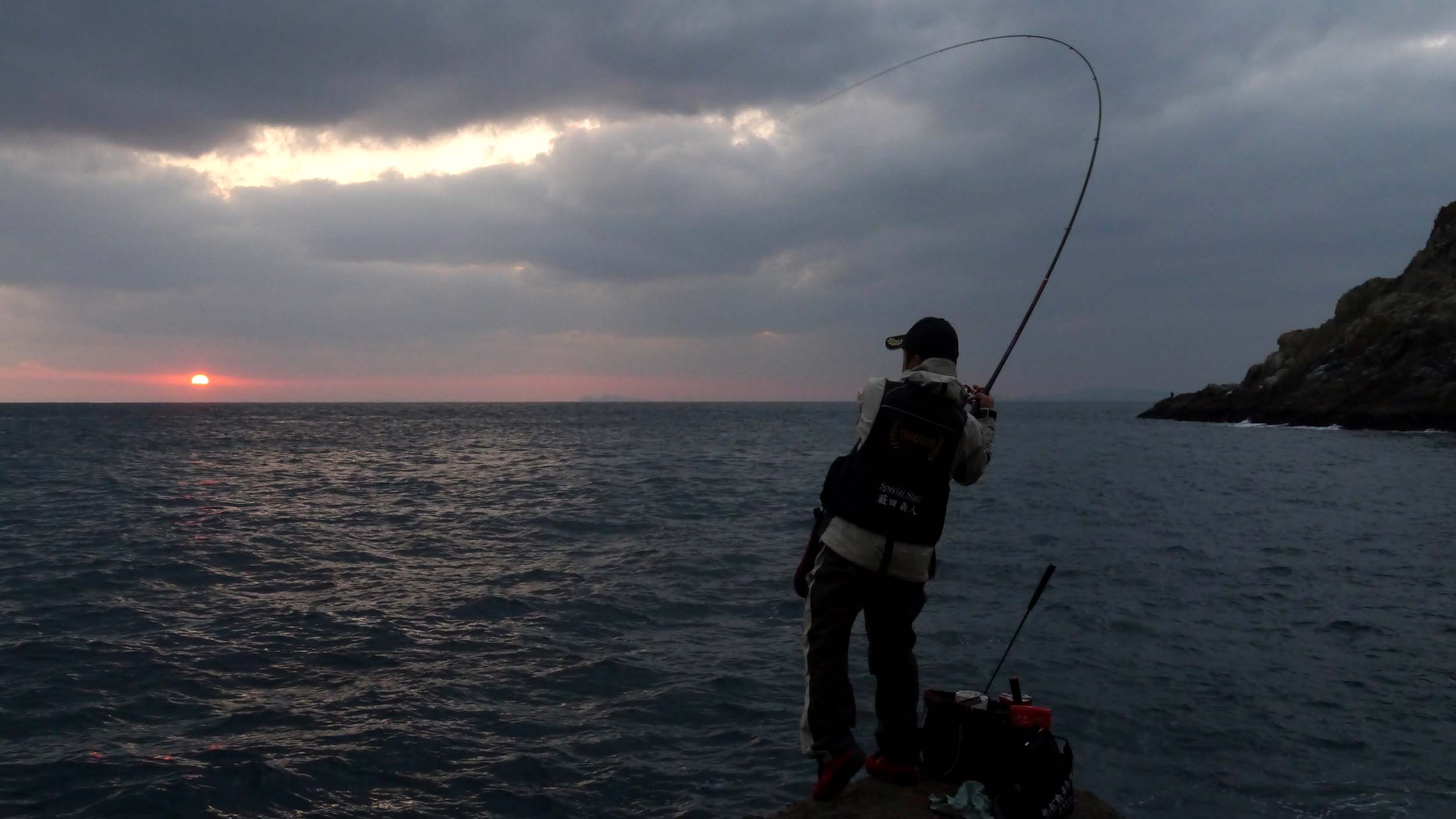 釣り場は野崎島の北東に位置する、“春一番”の隣のワンドに近い所で、北西の風が当たりにくい場所。磯に上がったのは30名中、26番目くらいでした。