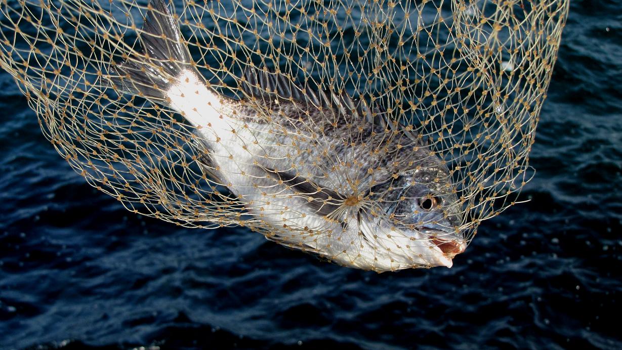 この後、カンダイを狙いましたがアタリは出ません。同行者がアジゴをタモで数匹ほど掬い、泳がせ釣りを始めたので、余っていたアジゴをカンダイ仕掛けに背掛けして投げ込むと、この仕掛けにもスズキが喰らいついてきました。今度はパワースペシャルフカセ5号です。巻くだけで70cmオーバーのスズキはタモの中。