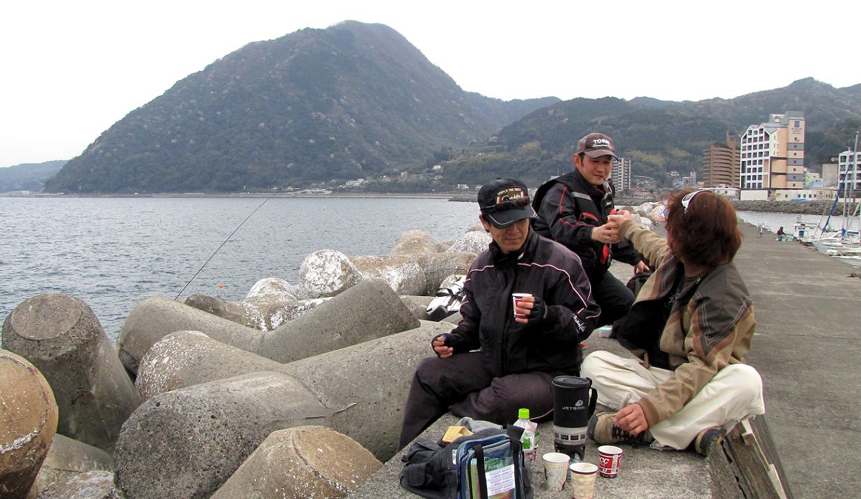 14時前には竿を振り始めましたが、一時間経っても一向にアタリが出ません。こんな時は休むに限ります。暖かいコーヒーを飲み、しばらく談笑です。なんともいえない一時が流れて行きまます。
