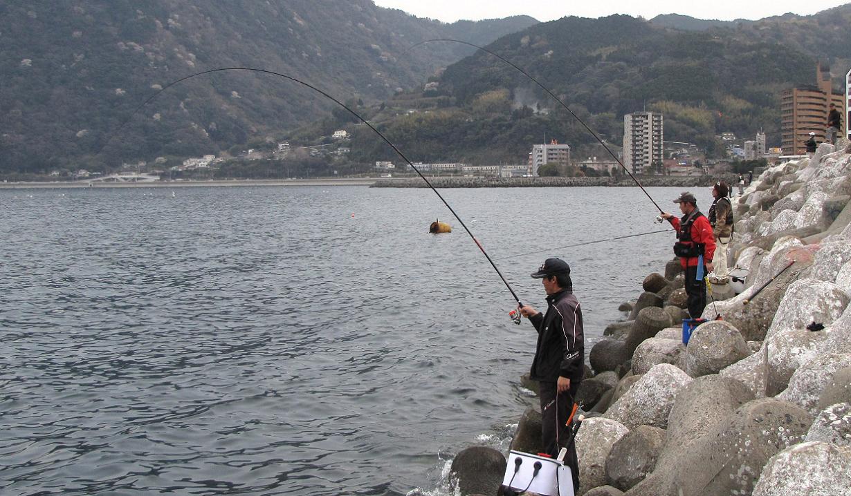 佐伯湾の南に鶴御崎が突き出ています。その北側には点々と漁港が連なっています。今回はその中で、猿戸と中越の二つの防波堤でカンダイを狙ってみました。