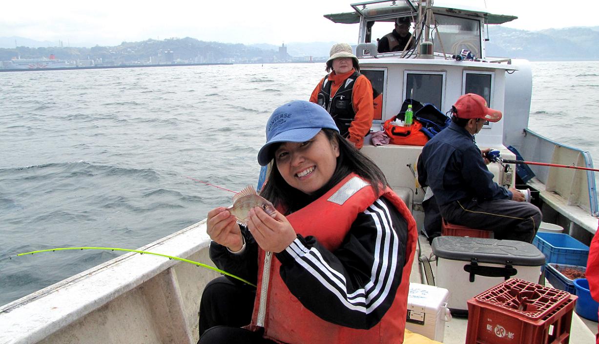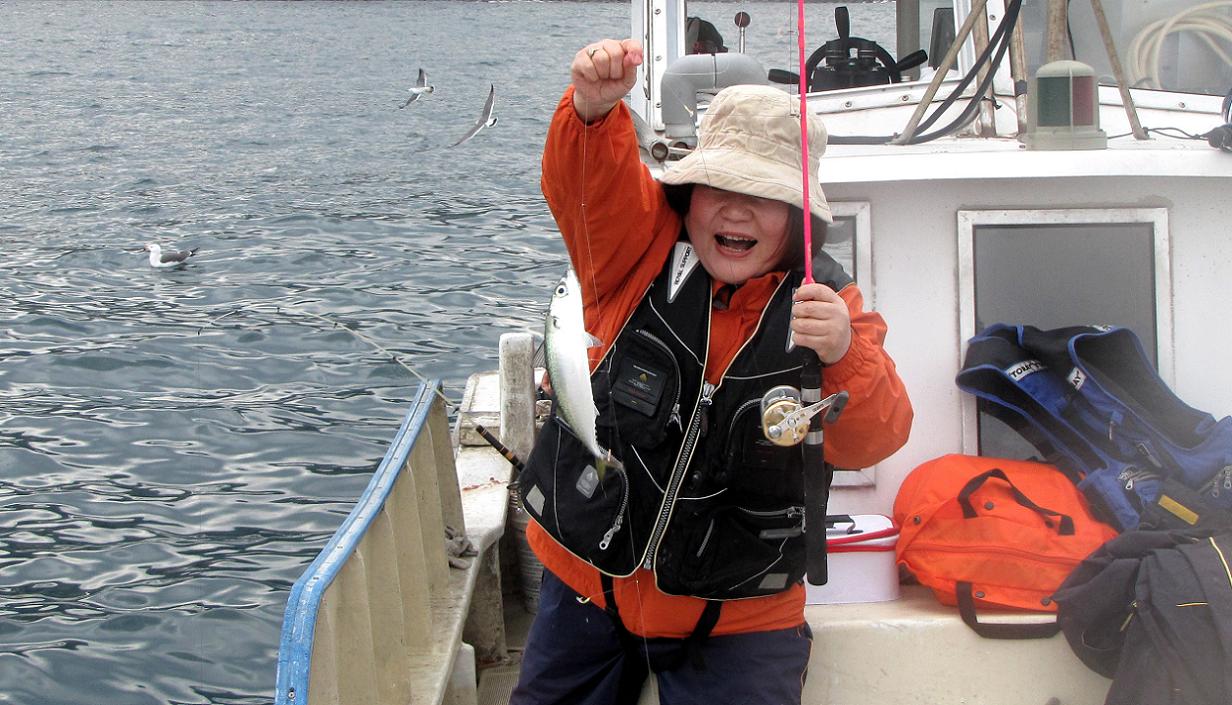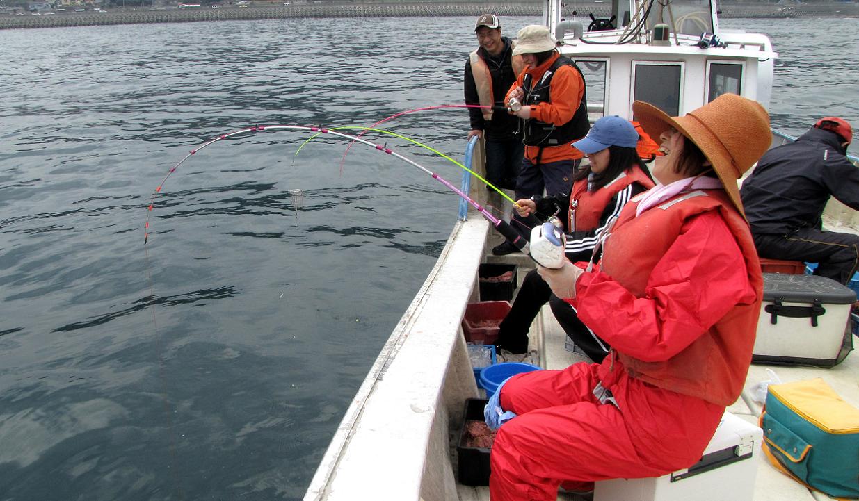 大分市内にある、釣具スーパーイヴは別府湾の近場の船釣りを2隻体制で行なっています。店長の誘いで行きましたが、私はほとんど女性陣の取材とアドバイス。