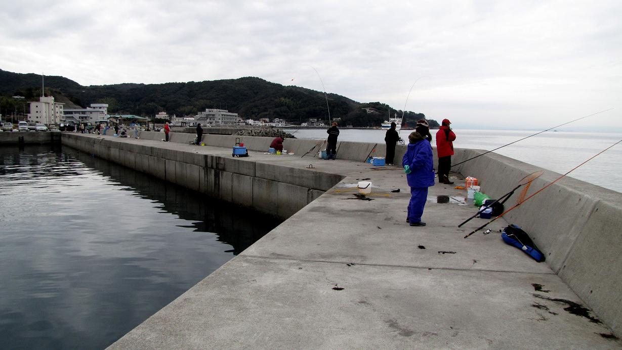 大会終了後、小浦の防波堤でカンダイを狙ってマキエを1時間30分撒いたのですが、大型のカンダイは現れません。当然仕掛は組まないで、あえなく終了。グレに見放され、カンダイにも見放された一日になってしまいましたが、新しい出会いなど色々と素晴らしい一日でした。