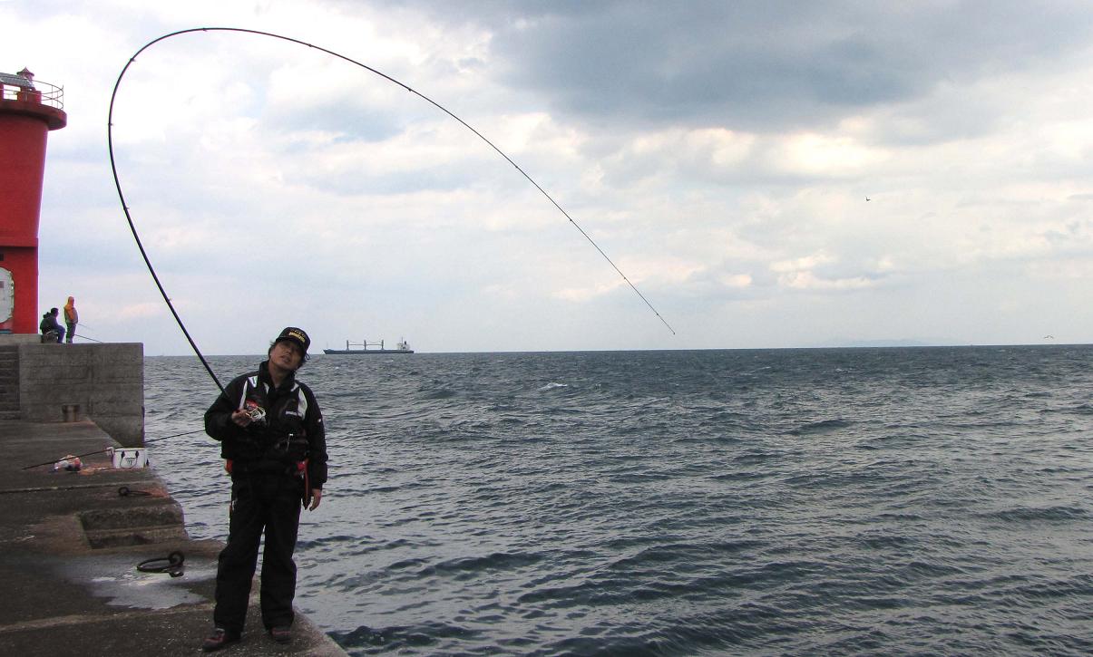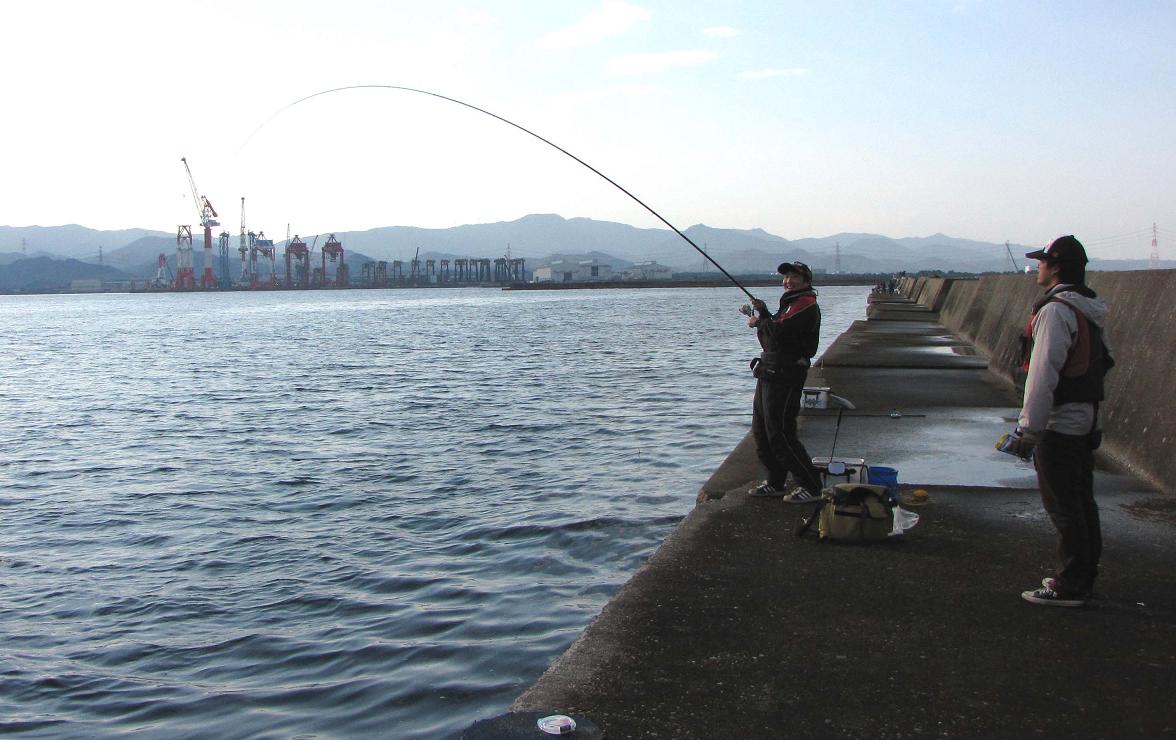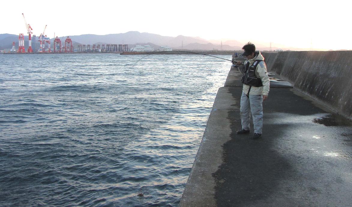 佐賀からやってきた眞子君に釣ってもらいました。場所は大分、坂ノ市(さかのいち)の一文字で横一文字の東の0番です。ココは冬の季節風を受け難いところで、沖一文字が波を被ってもやれるのです。