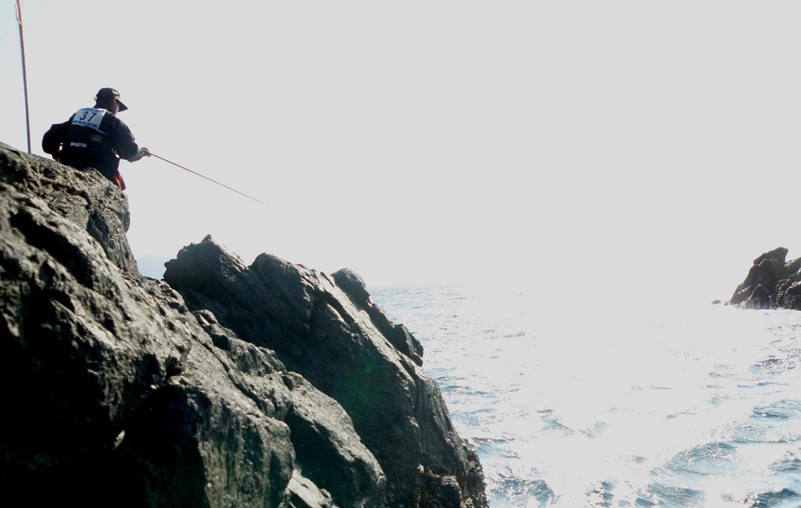 二回戦の場所の昨日戦ったカメ瀬です。対戦相手は今回優勝した笹岡さんです。昨日は吹き飛ばされそうになった釣り場ですが、今日はほとんど風が有りません。