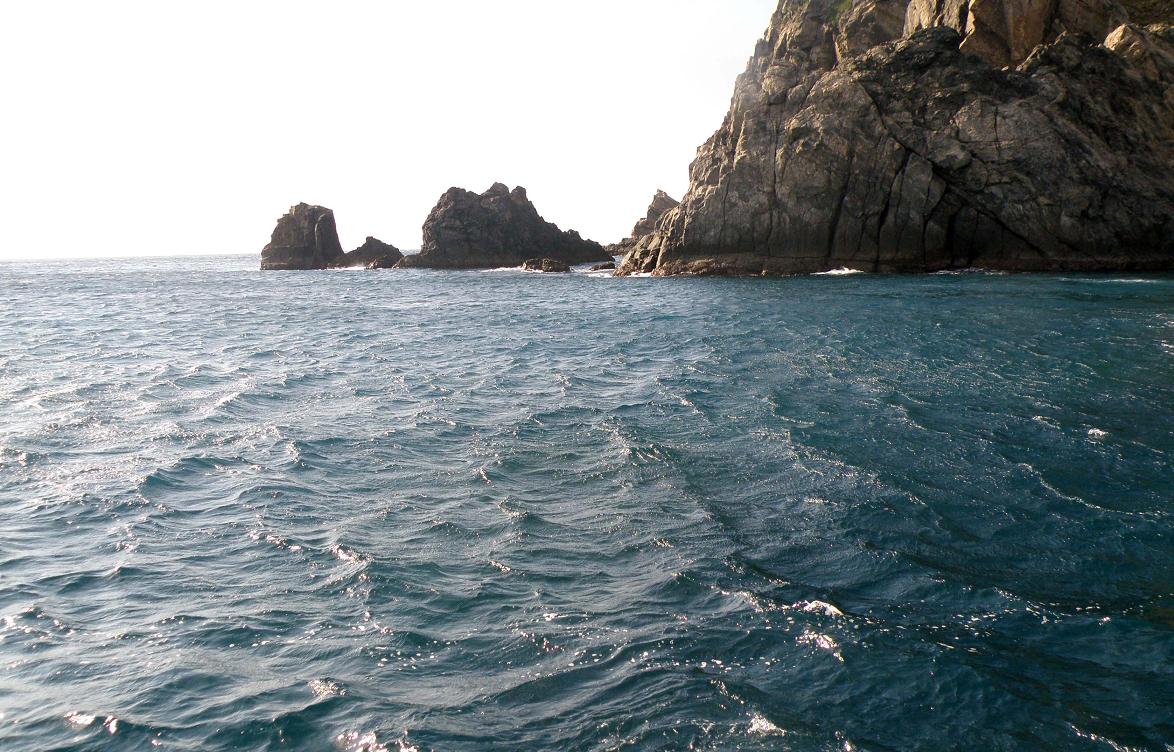 決勝リーグを制して上がったのは、私達の組からは笹岡さんが2勝1分で進み、2組からはテスターの横井さんが勝ち残りました。いよいよ決勝戦の始まりです。場所は沖ノ島本島の“ダバの下”で、前方に三ノ瀬と姫島が見えています。