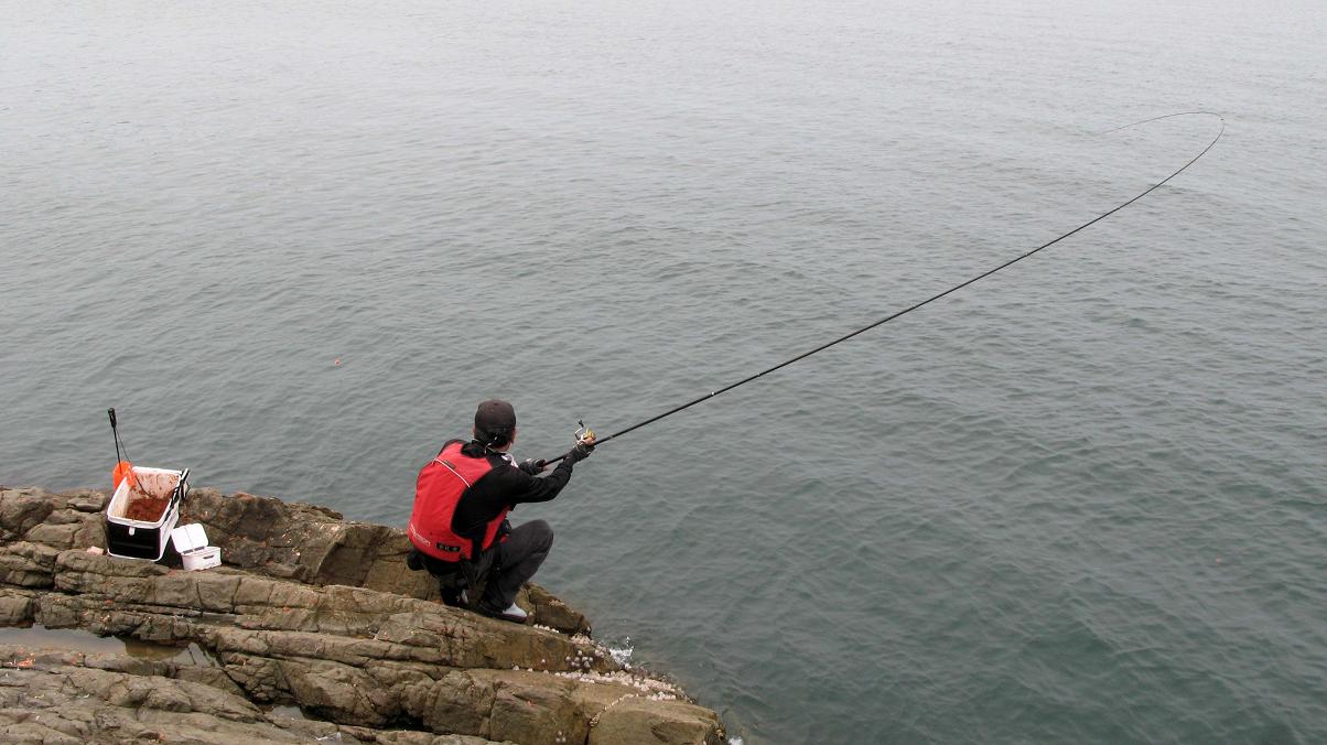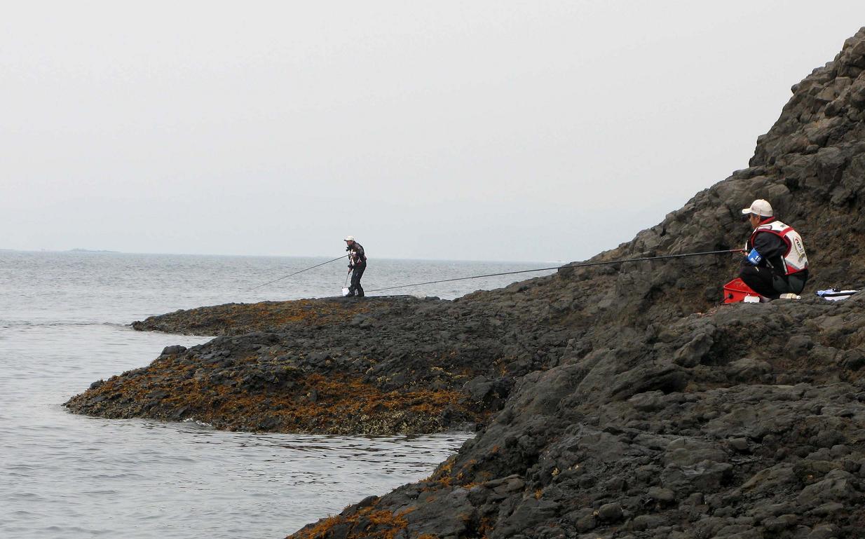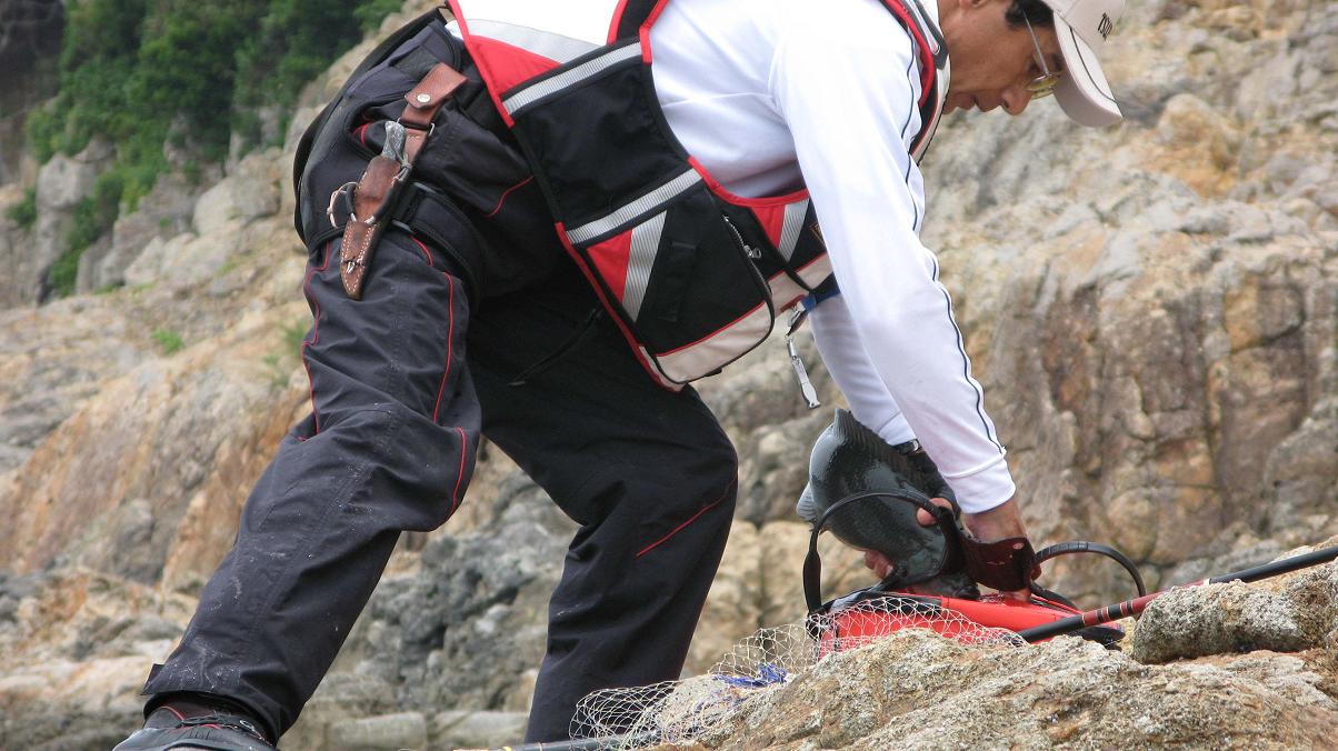 ほとんどの学生は磯釣りの経験が有りません。よってフローティングベストがないので、バス釣りなどで使う、“エアーフフローター”を腰に巻いて磯釣りをしました。