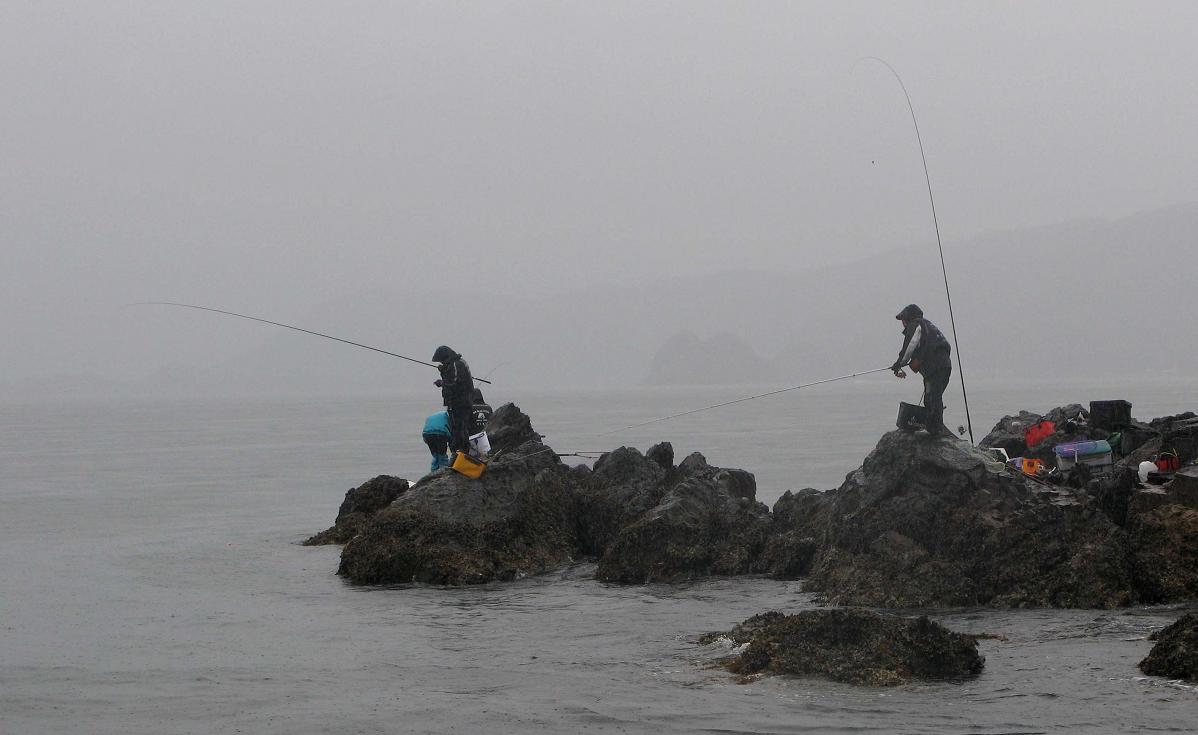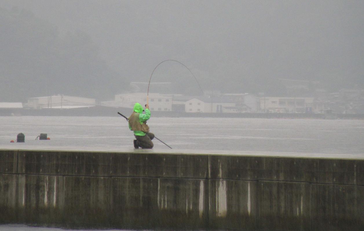 雨が強くて、思うようにカメラを扱えません。“白崎の一番”のグレは好調