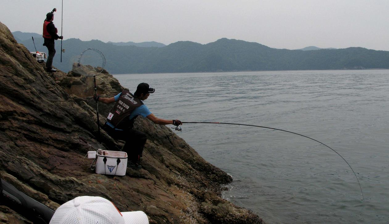決勝戦の場所に選んだトギレの鼻は、歩いて釣りに行ける場所で、乗っ込みチヌでは数が釣れます。でも梅雨時期には30cm級のグレも良く喰ってくれます。