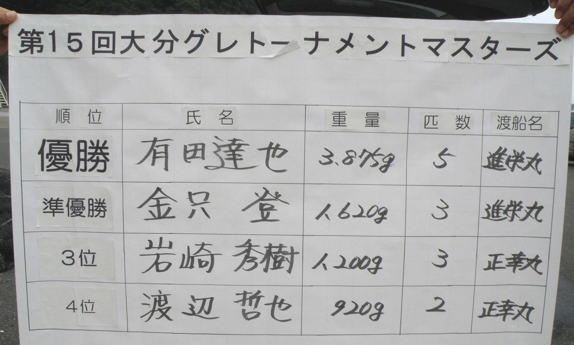 で、今回は猪熊君が初優勝グレのトーナメントで芽が出なかった彼がようやく輝いた日になりました。おめでとう。私の後に、大分の釣り界を担って欲しい釣人№1釣り師だけに、素直に嬉しい(^^ゞ