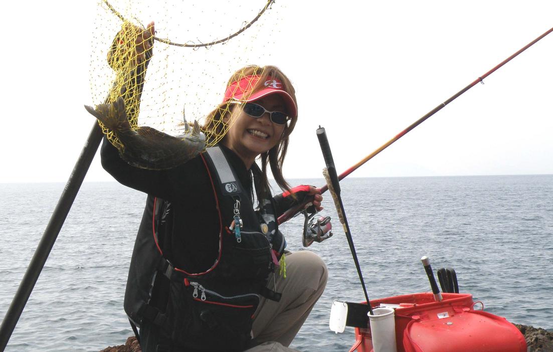 二回戦、対戦相手の由美子さんが良型のグレを取り込み、肉薄します