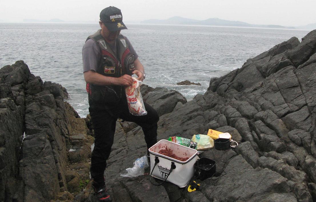 2回戦の前にマキエ作りをする加藤さん、この後壮絶なバトルです